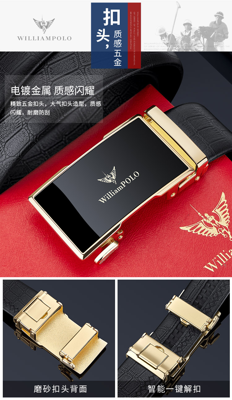 Paul nam thắt lưng da tự động khóa tự động da bò lớp đầu tiên trẻ trung mô hình cá sấu xu hướng xu hướng quần công sở bình thường xu hướng thắt lưng