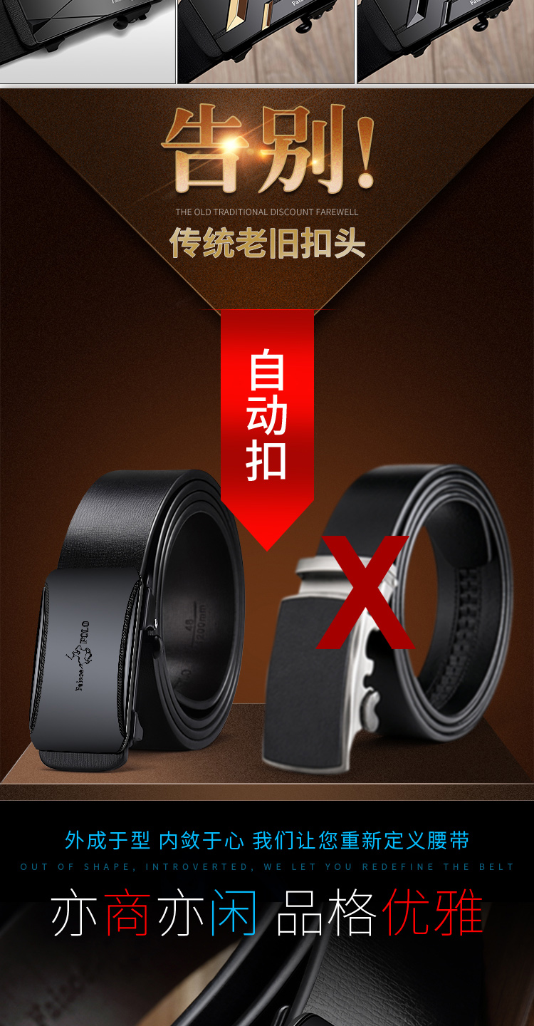 Paul POLO thắt lưng nam tự động khóa quần thắt lưng thanh niên trung niên kinh doanh giản dị da bò