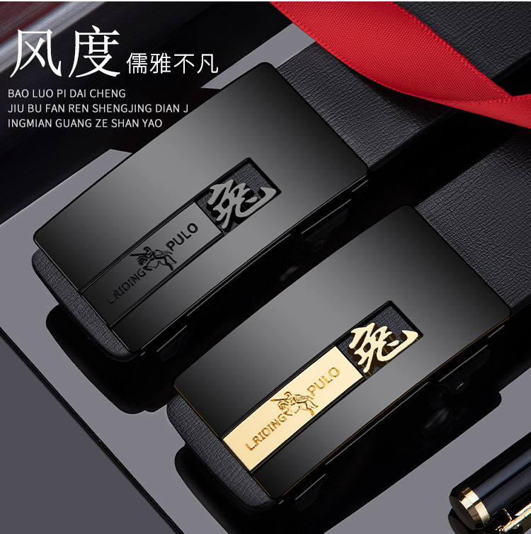 Paul PULO2023 Mới Paul Cung Hoàng Đạo Thắt Lưng Nam Da Thật Khóa Tự Động Công Sở Hộp Quà Tặng