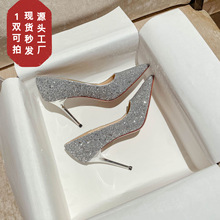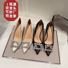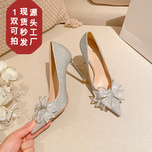 Pha Lê Giày Cưới Nữ Cô Dâu Xiuhe 2023 Pháp Mới Gót Nhọn Kim Cương Giả Hoa Đầm Váy Cưới Giày Cao Gót