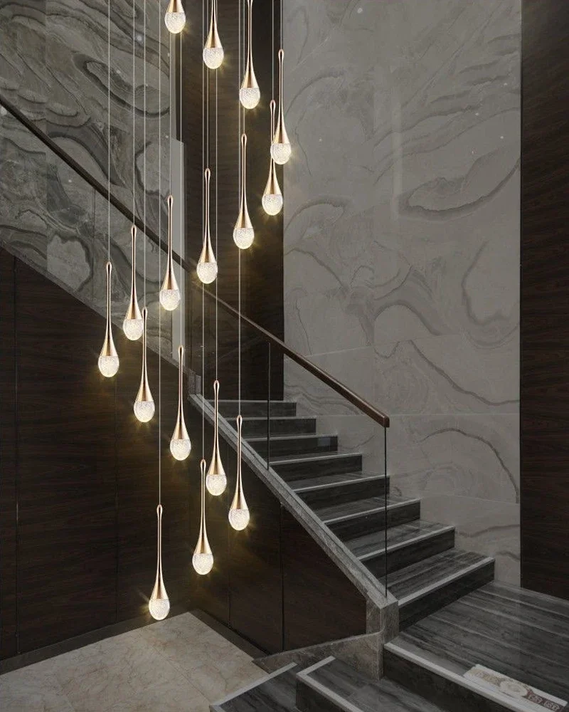 Modern Crystal LED Chandeliers For Living Room Lobby Luxury Cristal Long Staircase Hanging Lights Creative Gold Indoor Luminaire