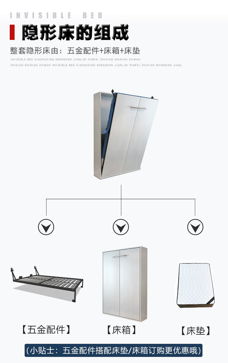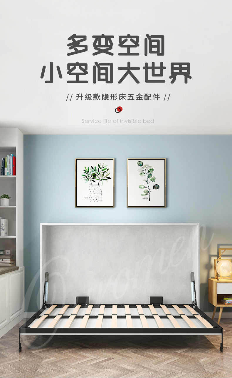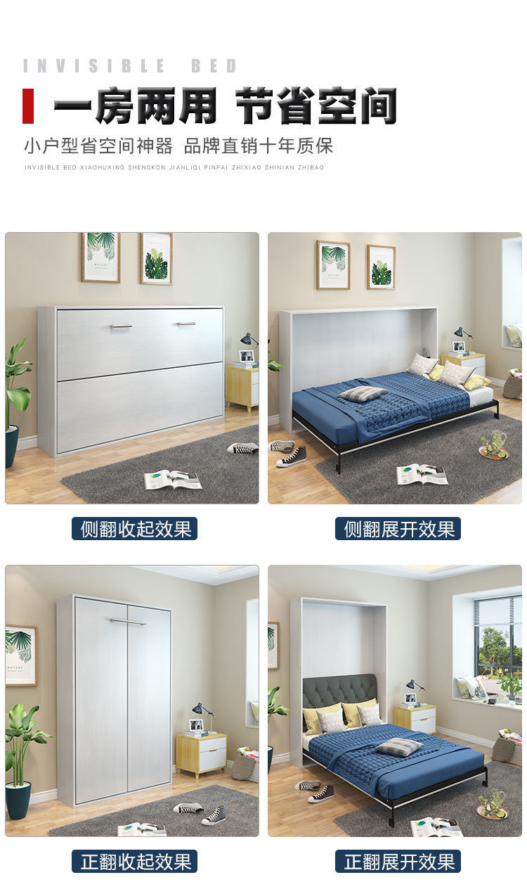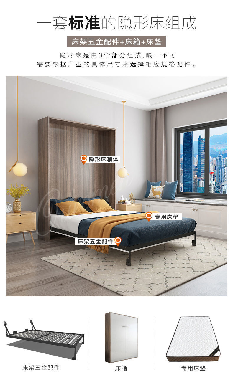 Phần cứng giường vô hình tủ quần áo treo tường có thể gập lại gia đình đa chức năng mới tích hợp giấc ngủ trưa ẩn