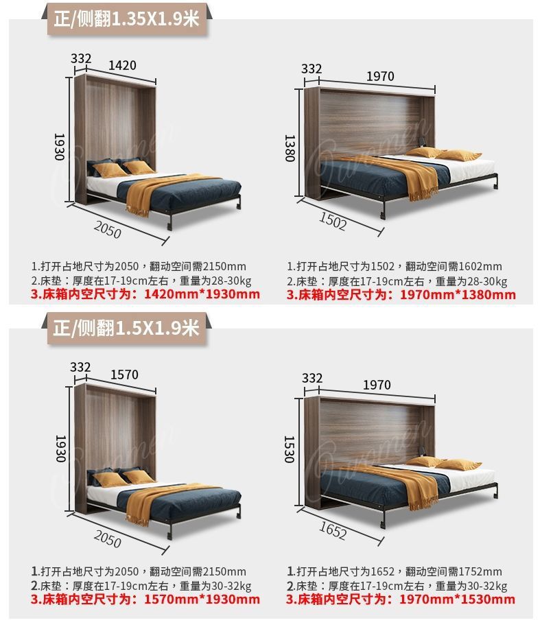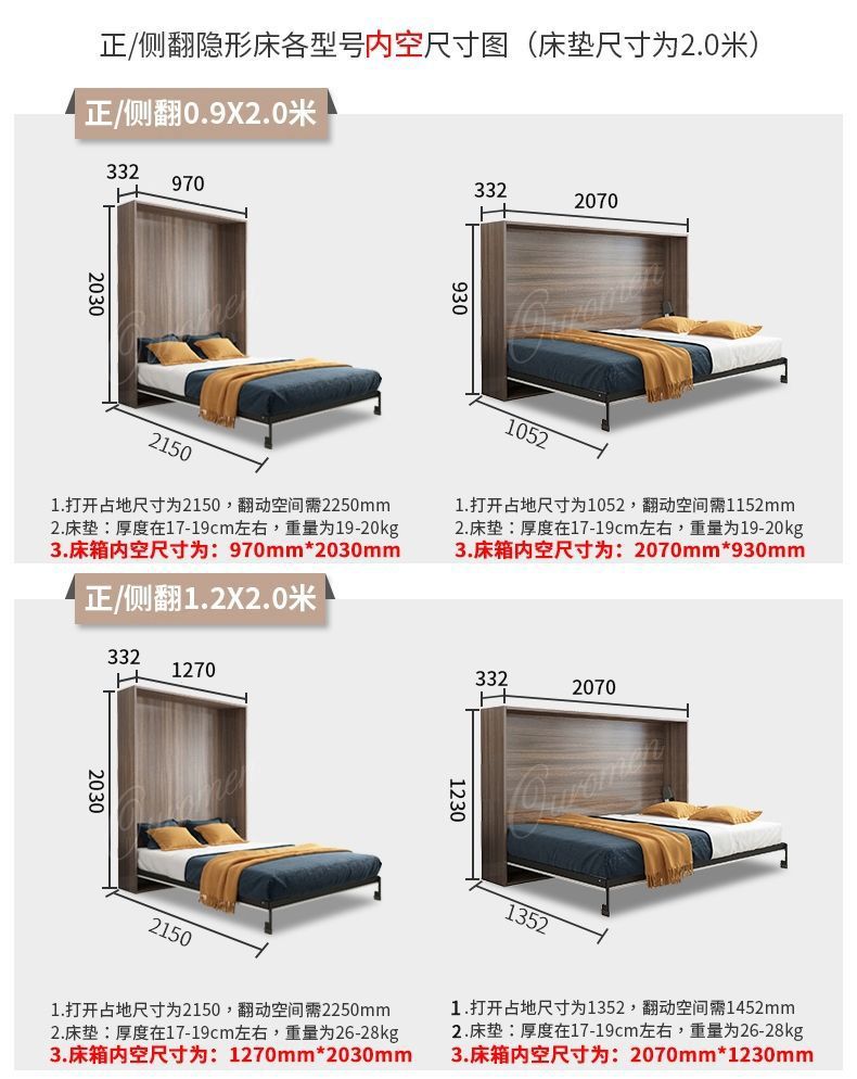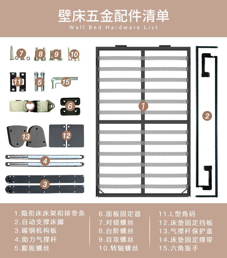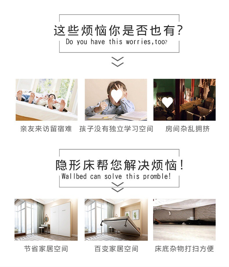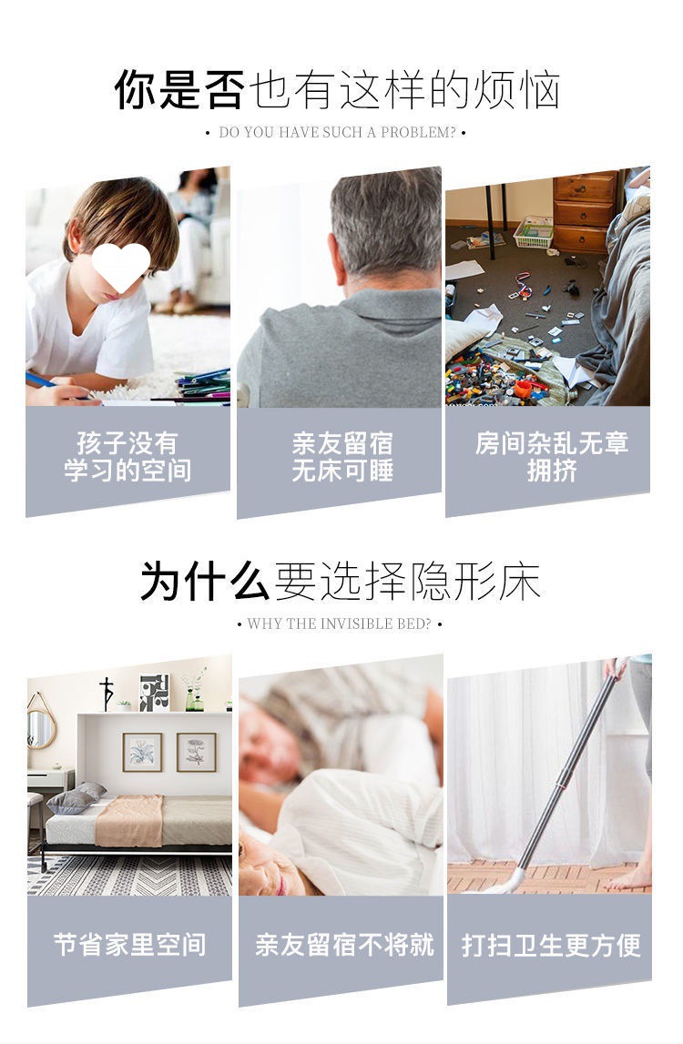 Phần cứng giường vô hình tủ quần áo treo tường có thể gập lại gia đình đa chức năng mới tích hợp giấc ngủ trưa ẩn