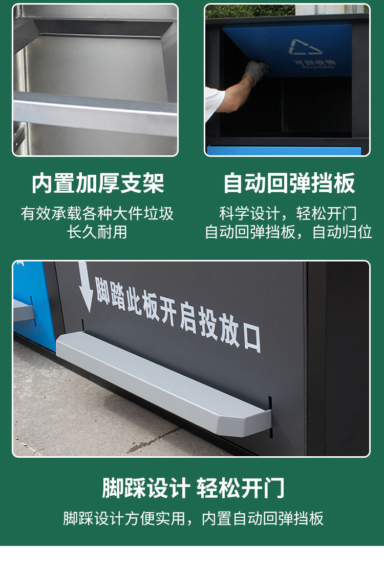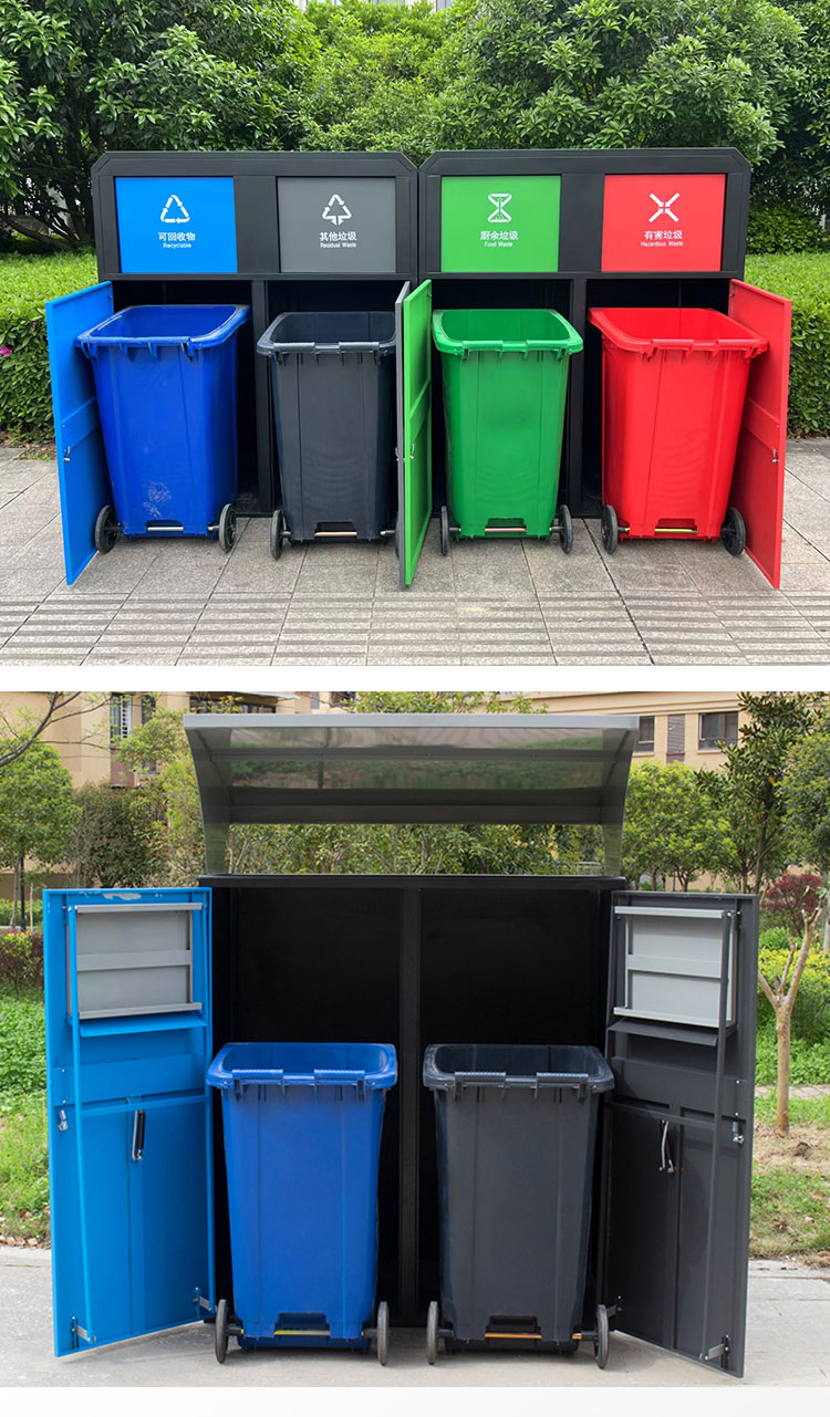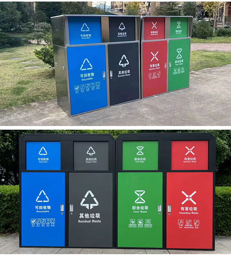 Phân loại ngoài trời hộp lớn bằng thép không gỉ có thể tái chế thùng rác cộng đồng có dung tích 240L tùy chỉnh bàn đạp tự động lớn
