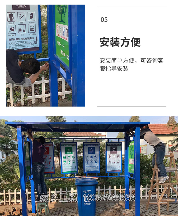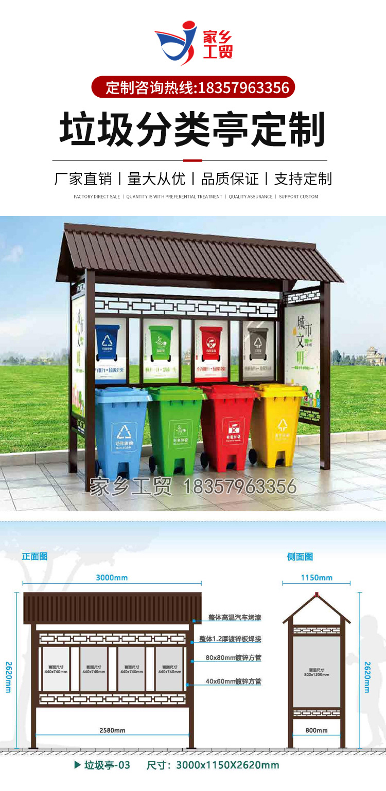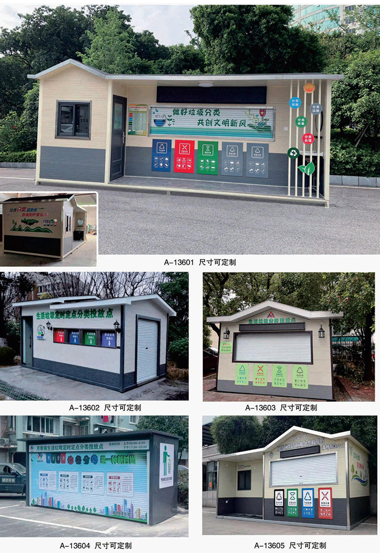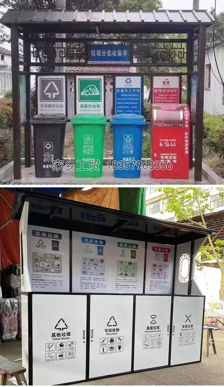 Phân loại rác kiosk phòng thu gom ngoài trời nhà kho chống mưa tùy chỉnh hộp phân loại bằng thép không gỉ vệ sinh phòng tái chế bảng tuyên truyền