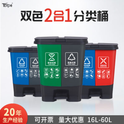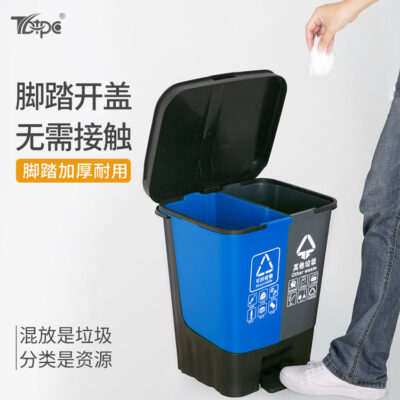 Phân loại thùng rác gia đình vận hành bằng chân tách khô và ướt thùng đôi trường nông thôn nhựa vệ sinh ngoài trời thùng rác
