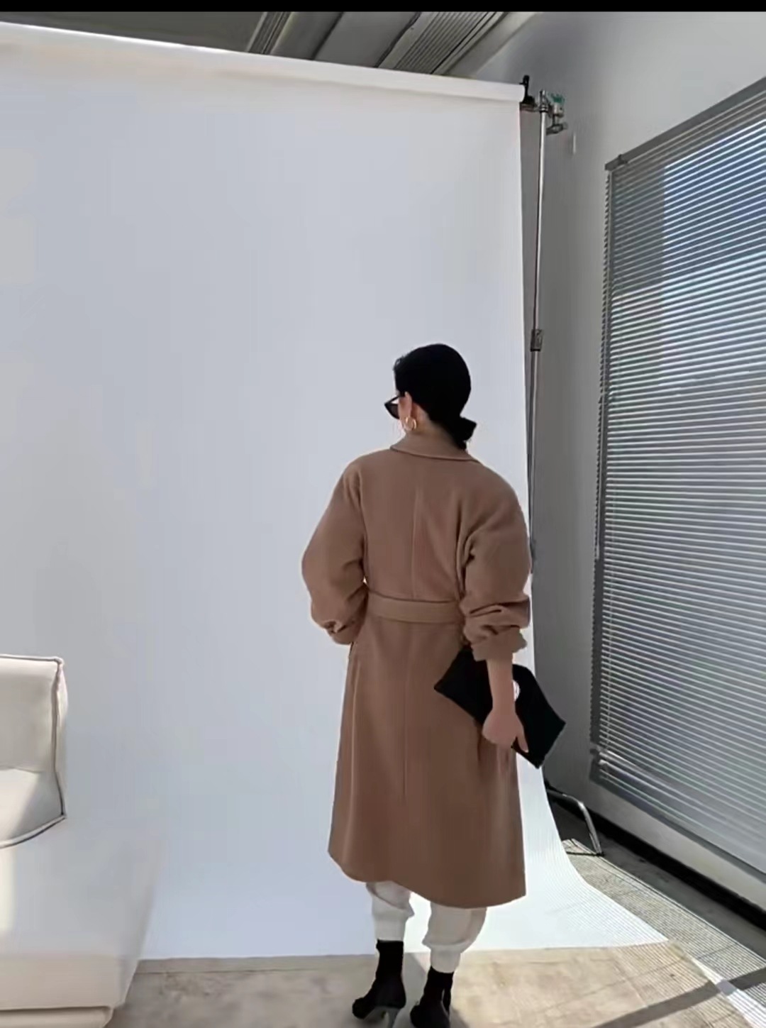 Pháp 2023 Cao Cấp Cashmere Áo Khoác Nữ Mùa Đông 90% Len 10% Cashmere Khóa Sừng Len 2 Mặt 101801
