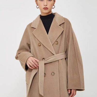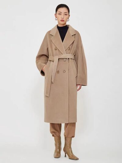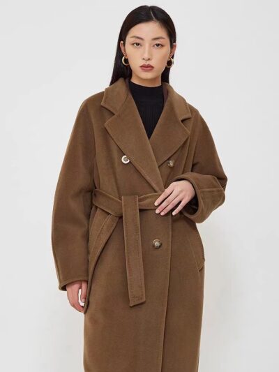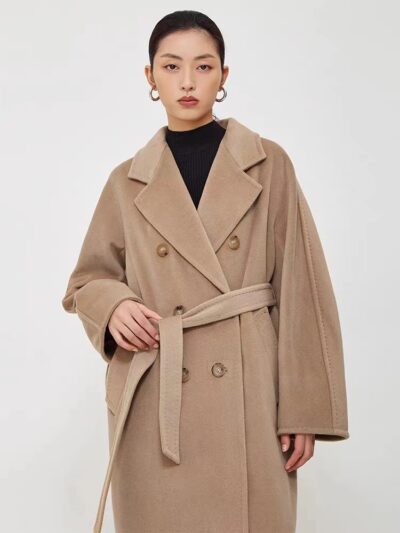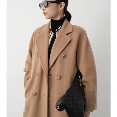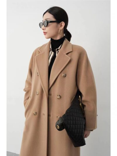 Pháp 2023 Cao Cấp Cashmere Áo Khoác Nữ Mùa Đông 90% Len 10% Cashmere Khóa Sừng Len 2 Mặt 101801