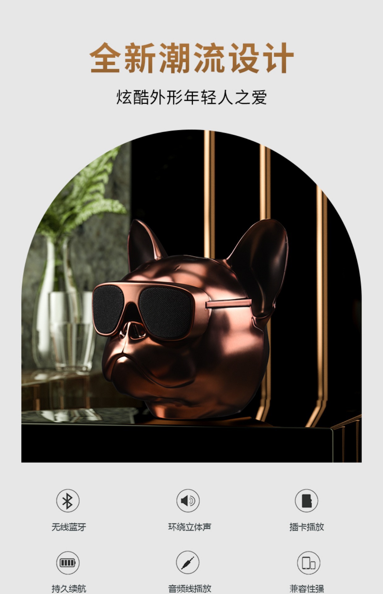 Pháp bulldog loa bluetooth loa siêu trầm cá tính thoáng mát loa nhỏ không dây loa siêu trầm đầu chó sáng tạo âm thanh