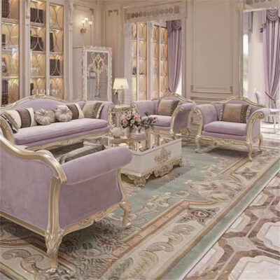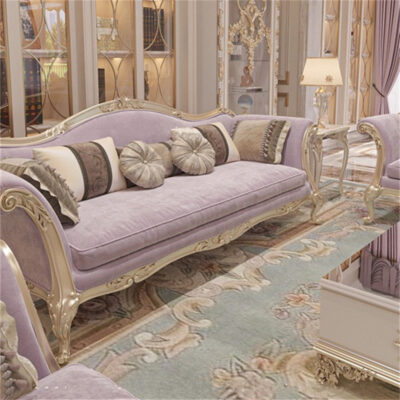 Pháp mới tối giản theo phong cách tòa án phòng khách kết hợp ghế sofa màu tím tân cổ điển retro gỗ nguyên khối chạm khắc bộ đồ nội thất