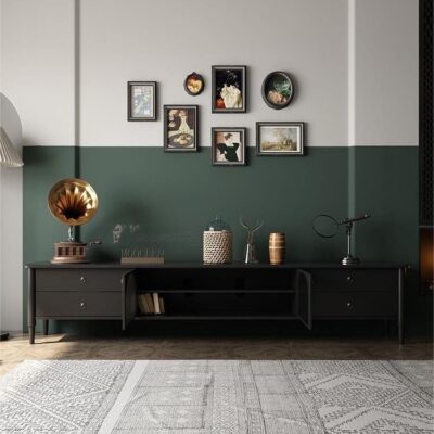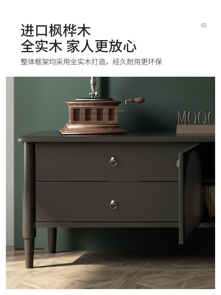 Pháp Retro Gỗ Chắc Chắn Bàn Tủ Tivi Kết Hợp Phòng Khách Nhà Căn Hộ Nhỏ Đen Tủ Tivi Bắc Âu Cổ Điển