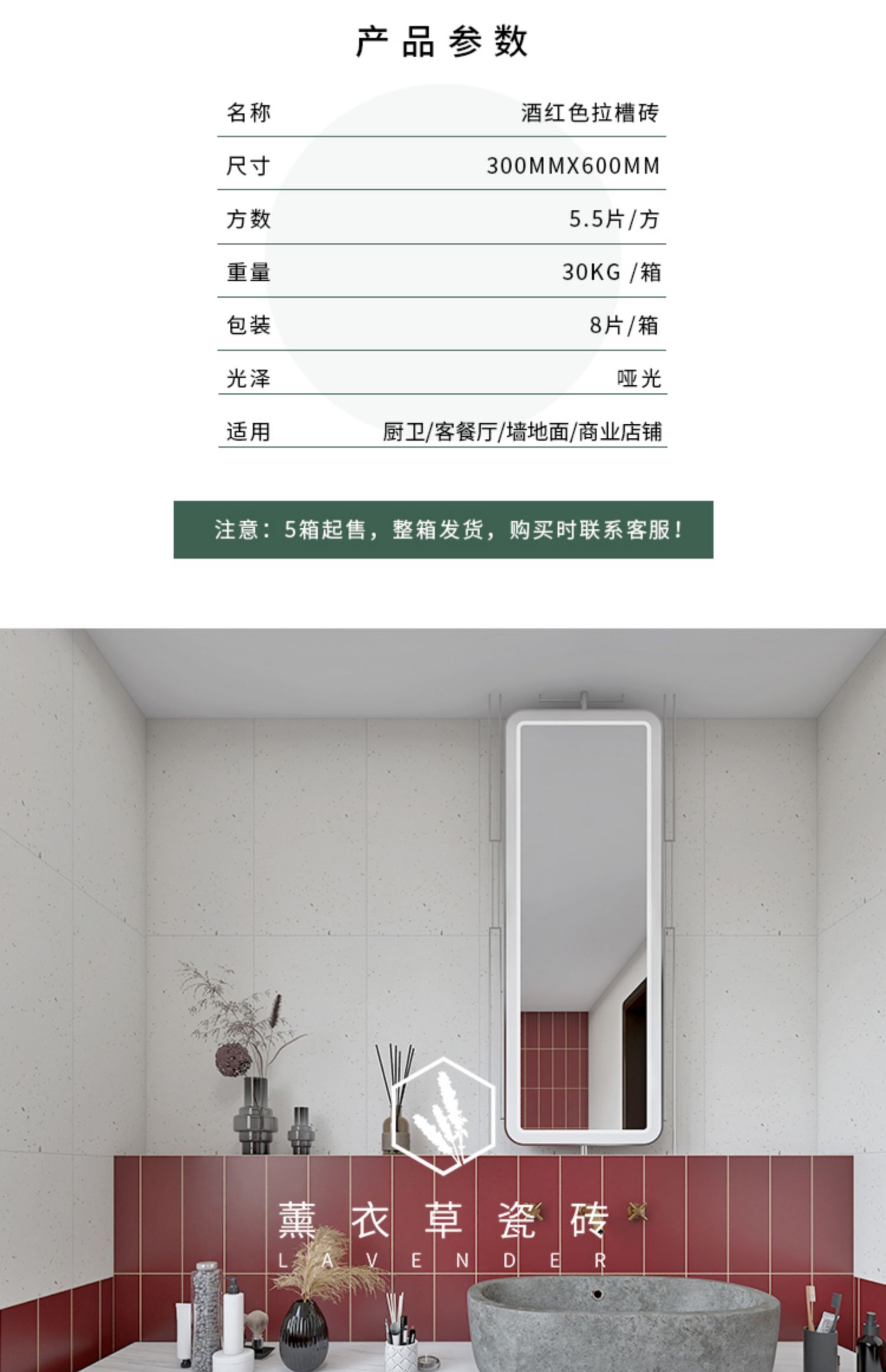Pháp Retro Rượu Vang Đỏ Ngói Vệ Sinh Phòng Tắm Lưới Tường Gạch Macaron Nhà Bếp Kéo Rãnh Gạch Mờ Sàn