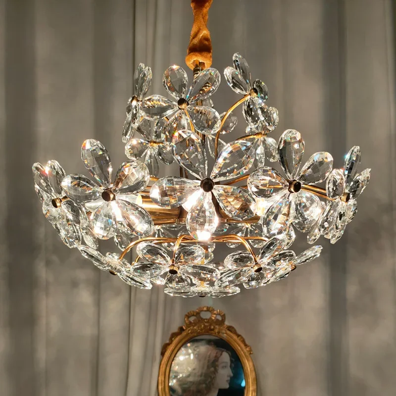 French New Design Crystal Flower Ceiling Chandelier Retro Living Bedroom Restaurant Lamp Luxury Lighting LED Lustre Decoration
