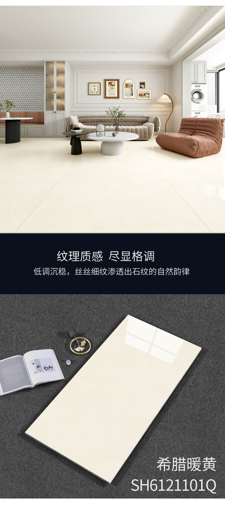 Phật Sơn Nhà Máy Đồng Bằng Sáng 600*1200 Toàn Thân Đá Cẩm Thạch Màu Vàng Ấm Áp Lát Sàn Phòng Khách Phòng Ngủ Phòng Tắm Ốp Tường