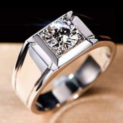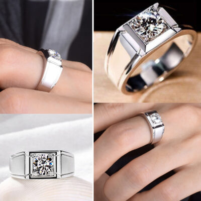 Phiên bản bóng bẩy Nhẫn độc đoán giả kim cương Moissanite cổ điển ổn định và thanh lịch thời trang nam Nhẫn cưới nam cá tính hợp thời trang