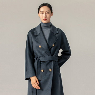 Phiên bản cải tiến của MAX Home 101801 áo khoác len cashmere hai mặt sóng gợn nước dáng dài áo khoác len merino nữ