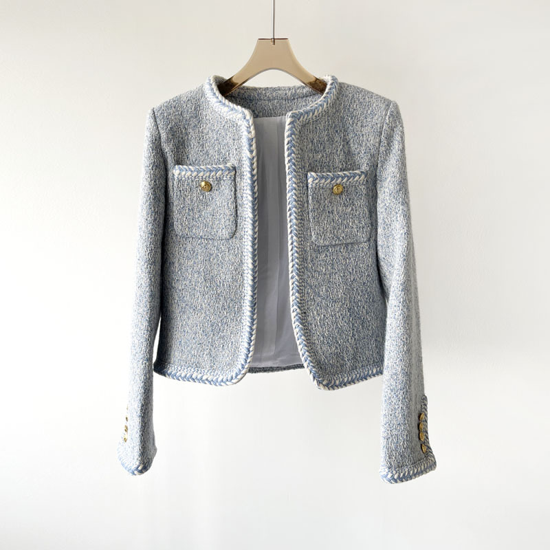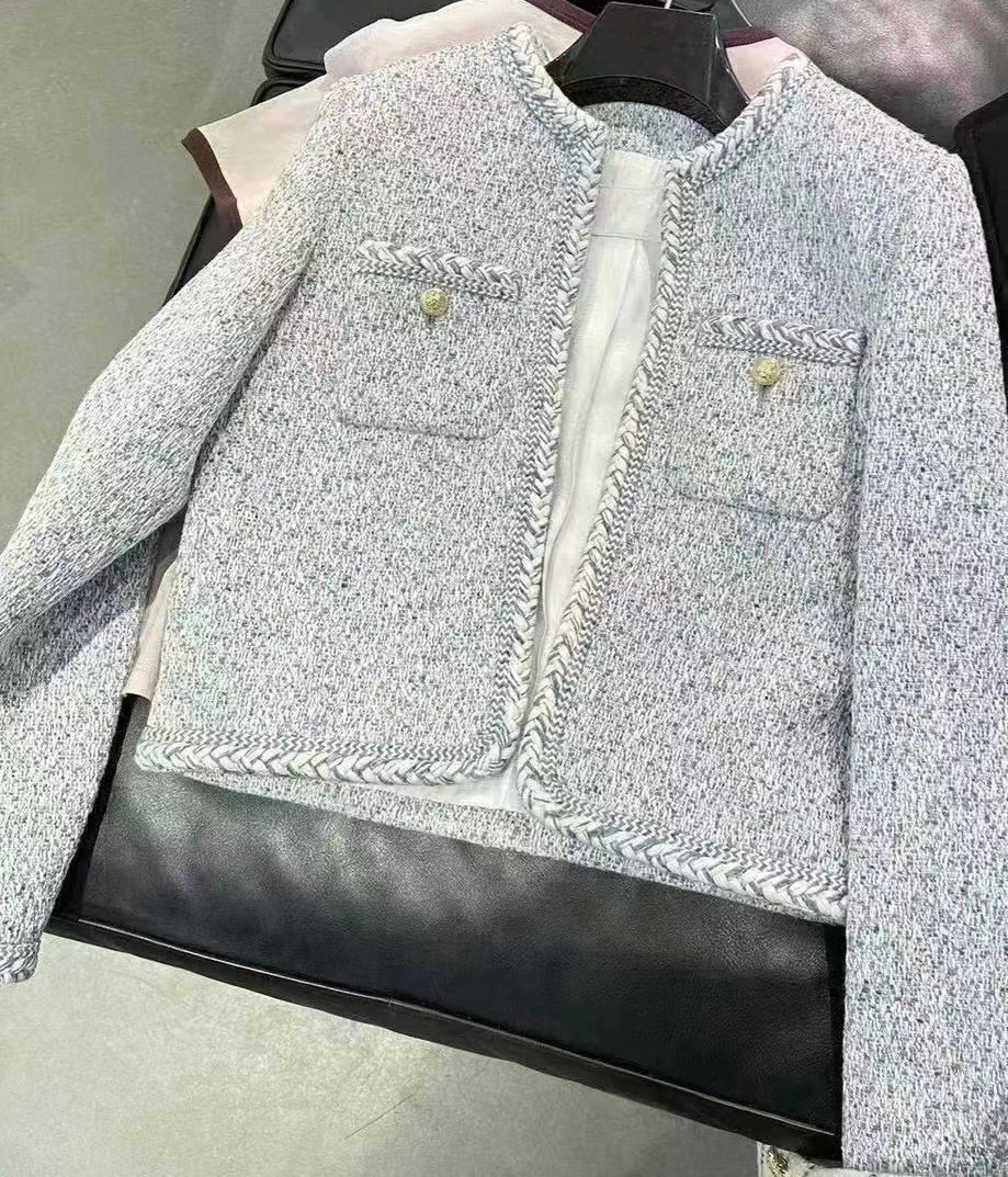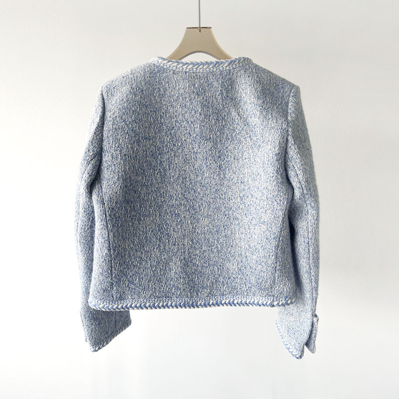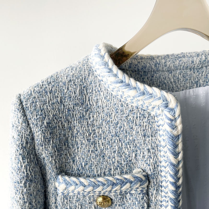 Phiên Bản Đúng CE Mùa Xuân 2023 Quần Áo Nữ Mới Sông Băng Màu Xanh Nhỏ Hương Len Săn Bắn Áo Khoác Cardigan