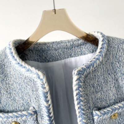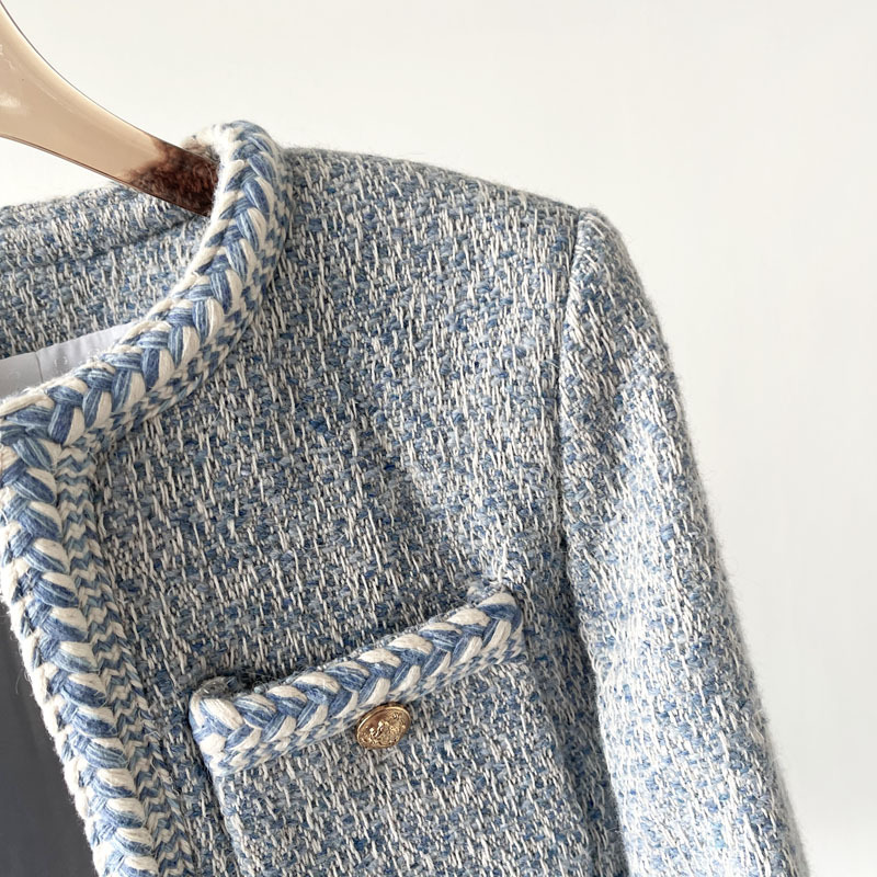 Phiên Bản Đúng CE Mùa Xuân 2023 Quần Áo Nữ Mới Sông Băng Màu Xanh Nhỏ Hương Len Săn Bắn Áo Khoác Cardigan