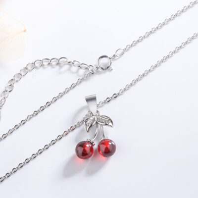 Phiên Bản Hàn Quốc Bạc S925 Mặt Dây Chuyền Anh Đào Garnet Đỏ Mori Vòng Cổ Anh Đào Ngọt Ngào Và Dễ Thương Cho Bạn Gái Quà Tặng