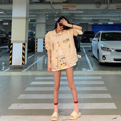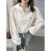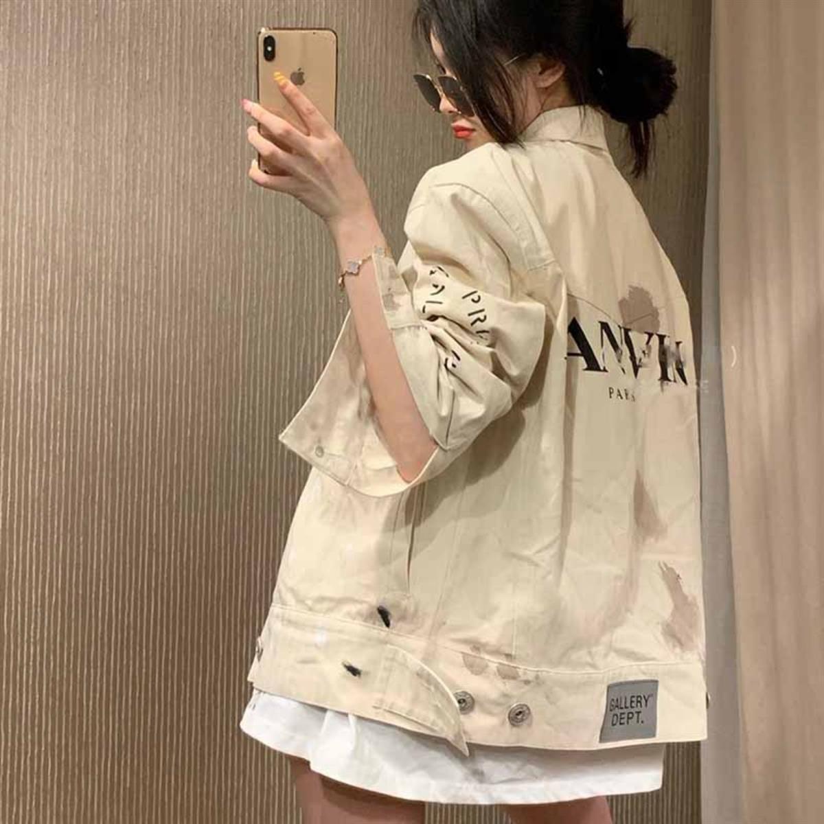 Phiên bản hàn quốc của áo khoác cặp đôi đường phố trong áo khoác denim màu trắng phù hợp với tất cả các phong cách thời trang mùa xuân và mùa thu 2023 nữ trên mạng màu đỏ