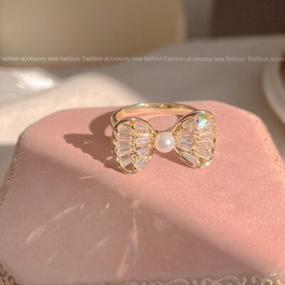 Phiên bản Hàn Quốc của chiếc nhẫn đính nơ ngọt ngào siêu nhỏ cá tính khí chất ánh sáng sang trọng zircon nhẫn ngón trỏ trang sức tay khí chất cao cấp