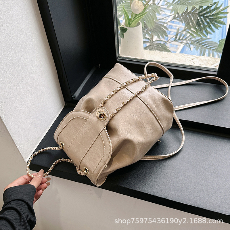 Phiên bản Hàn Quốc của ins sức chứa lớn ba lô nữ phong cách retro nhỏ gió thơm phong cách nước ngoài sinh viên đại học túi đeo vai da sáp dầu thủy triều