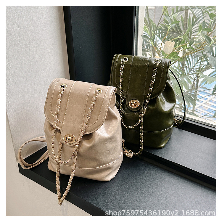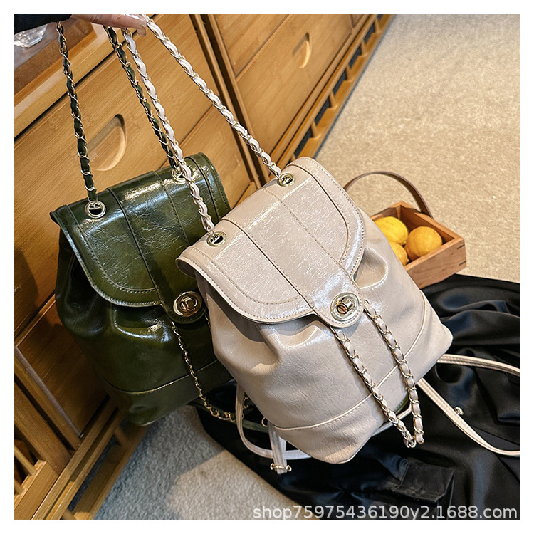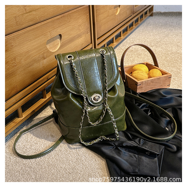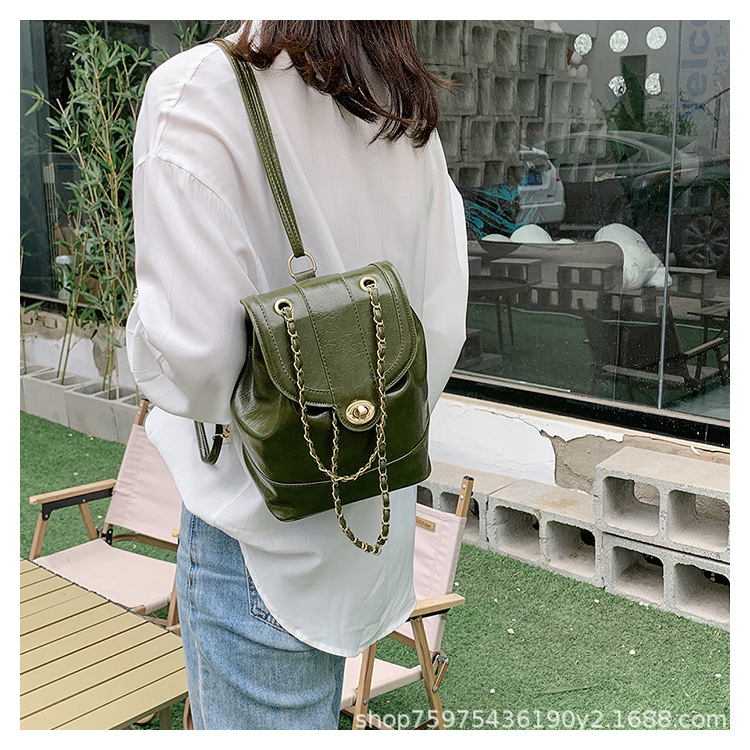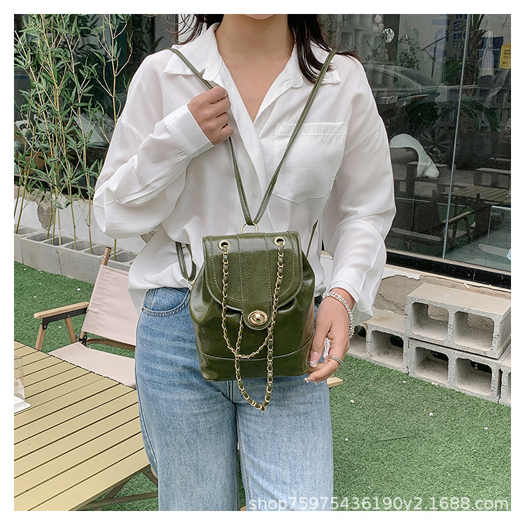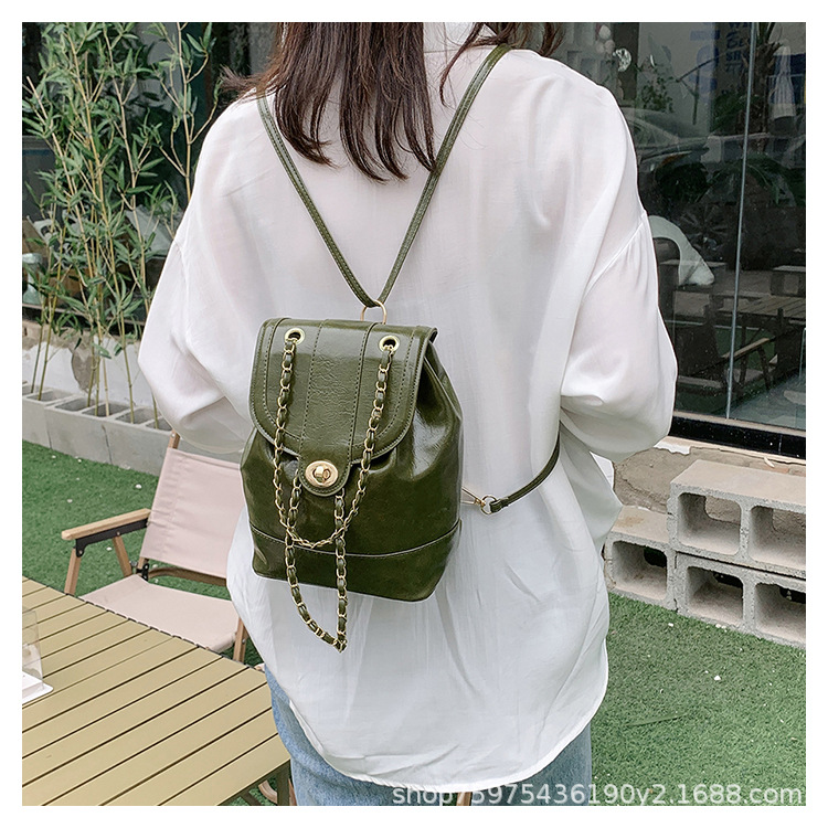Phiên bản Hàn Quốc của ins sức chứa lớn ba lô nữ phong cách retro nhỏ gió thơm phong cách nước ngoài sinh viên đại học túi đeo vai da sáp dầu thủy triều
