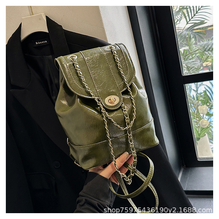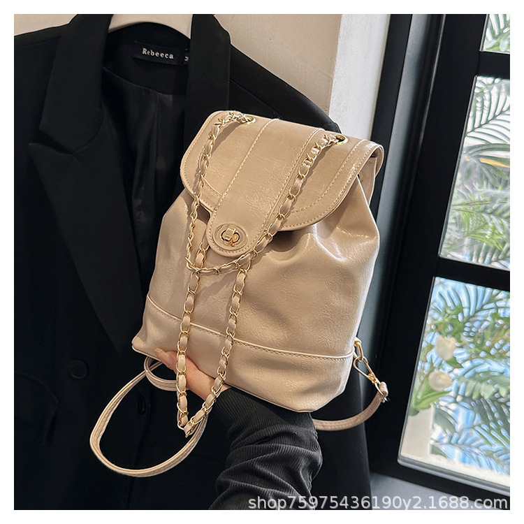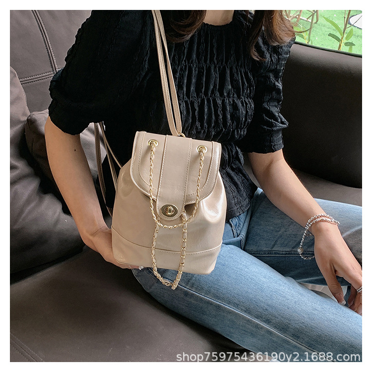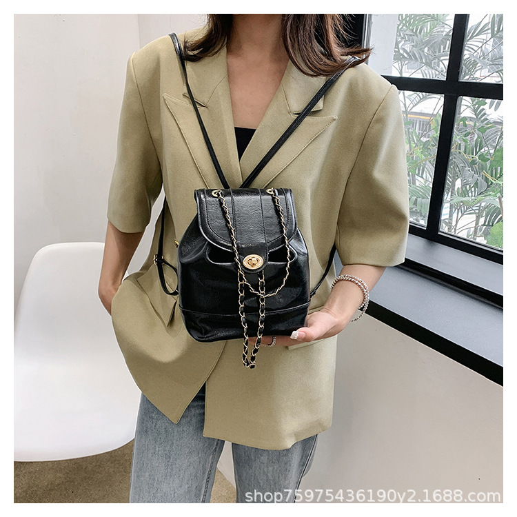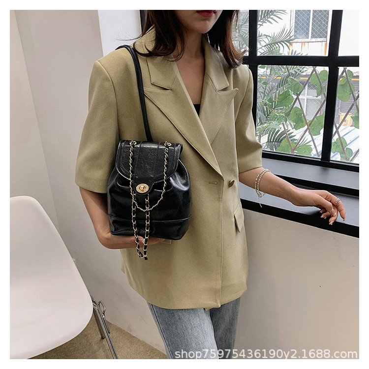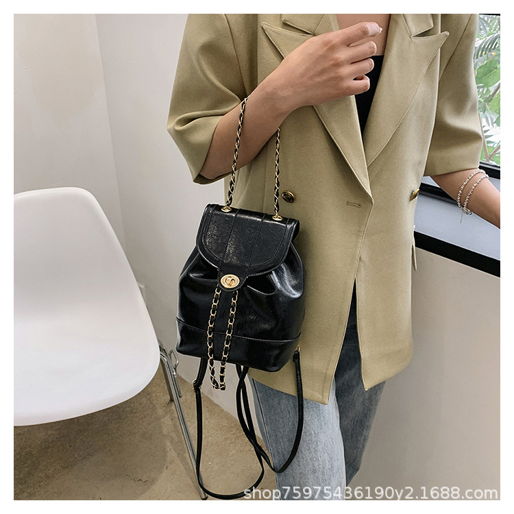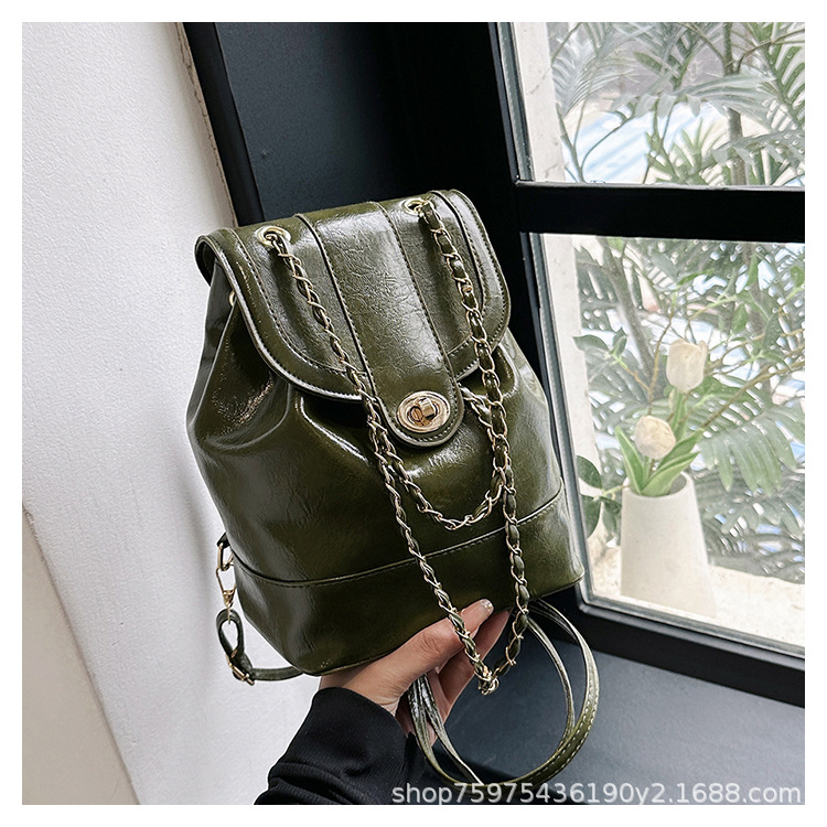 Phiên bản Hàn Quốc của ins sức chứa lớn ba lô nữ phong cách retro nhỏ gió thơm phong cách nước ngoài sinh viên đại học túi đeo vai da sáp dầu thủy triều