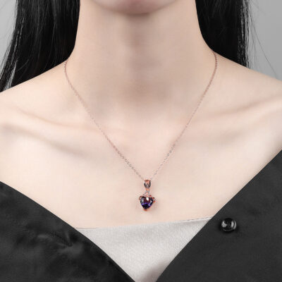 Phiên bản Hàn Quốc của mặt dây chuyền mới nữ mặt dây chuyền thạch anh tím hình trái tim sáng tạo khí chất vàng hồng tình yêu mặt dây chuyền dây chuyền xương đòn zircon