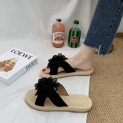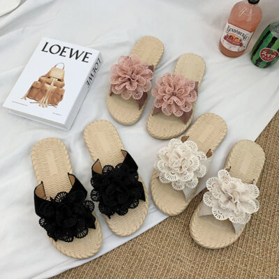 Phiên bản Hàn Quốc của mùa hè dép mới áo khoác ngoài của phụ nữ dép hoa lưới trái tim màu đỏ của cô gái phù hợp với tất cả các loại dép đế bằng học sinh giày nữ