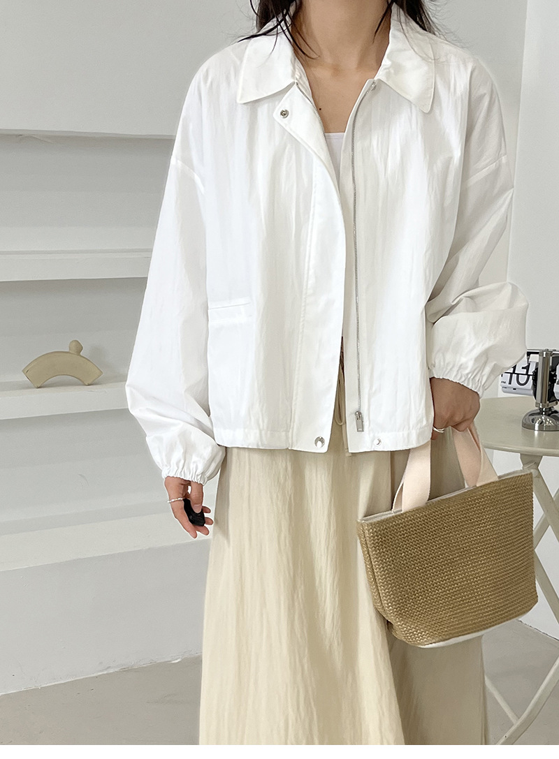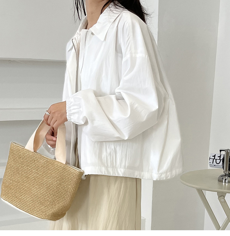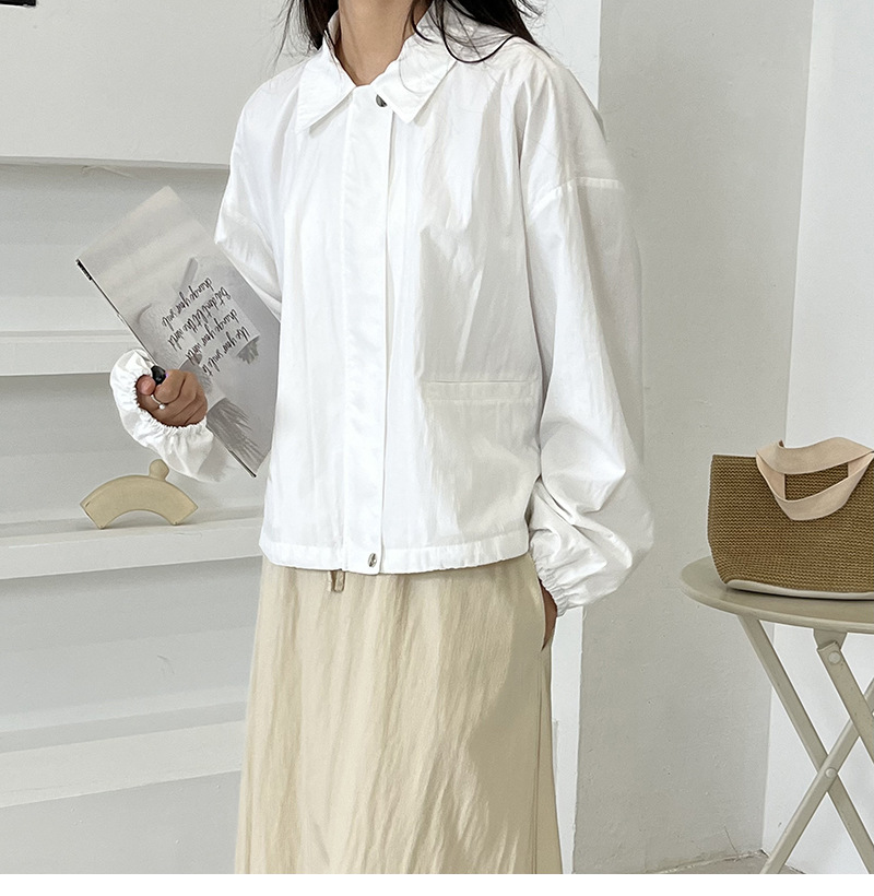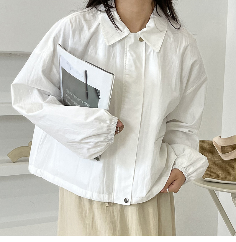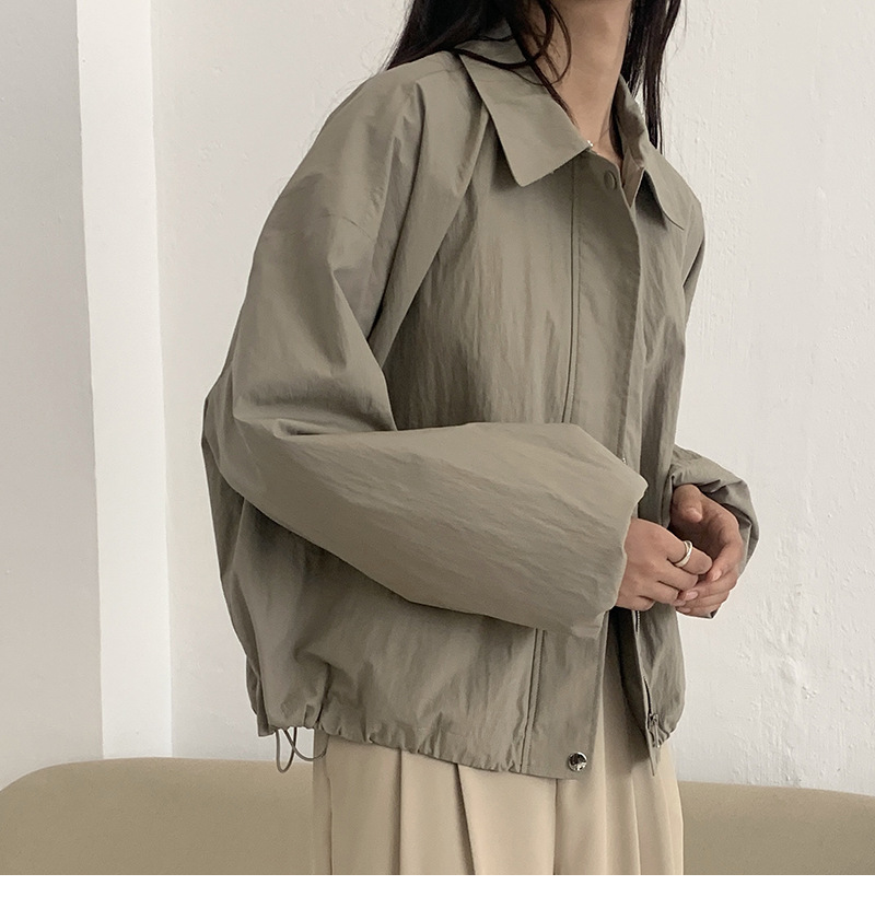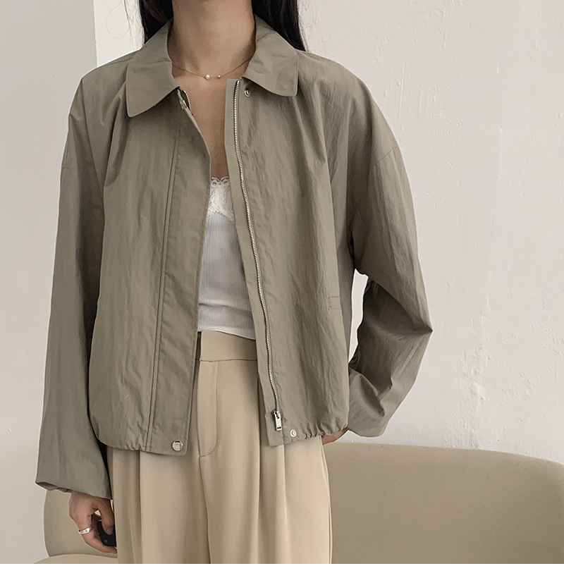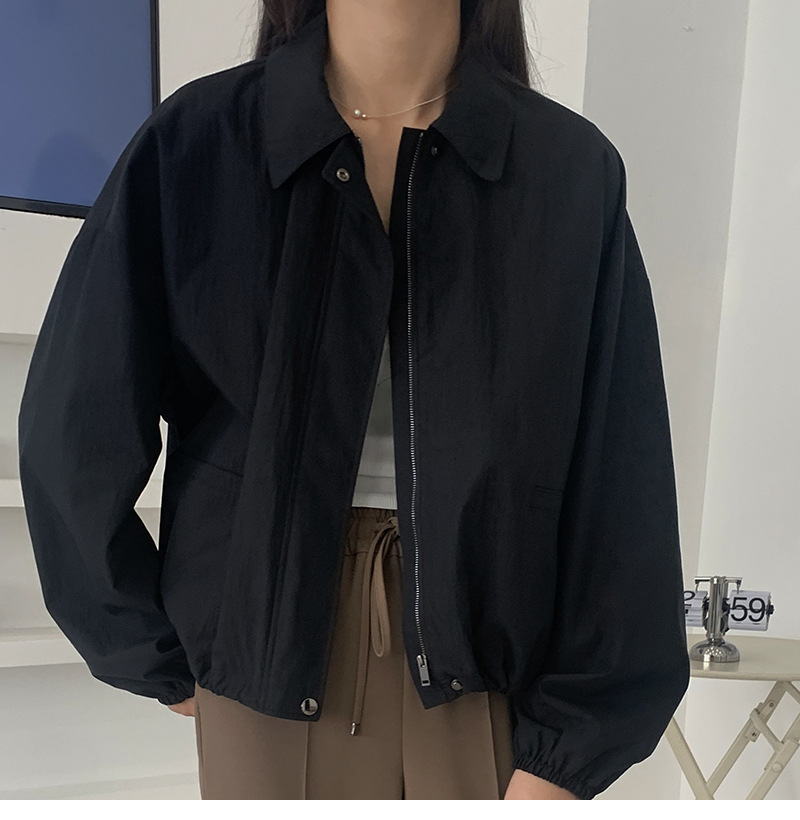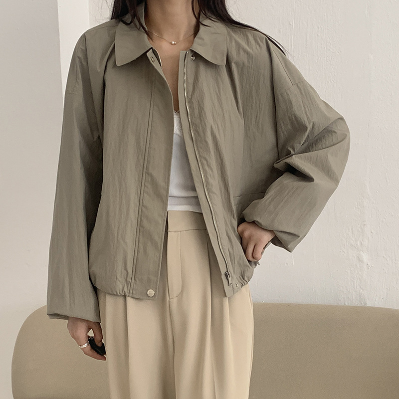 Phiên bản Hàn Quốc của mùa thu mới phù hợp với tất cả các công cụ áo khoác áo khoác nữ màu trơn phần ngắn nhỏ đơn giản giản dị khóa kéo hàng đầu
