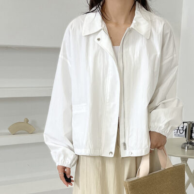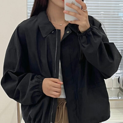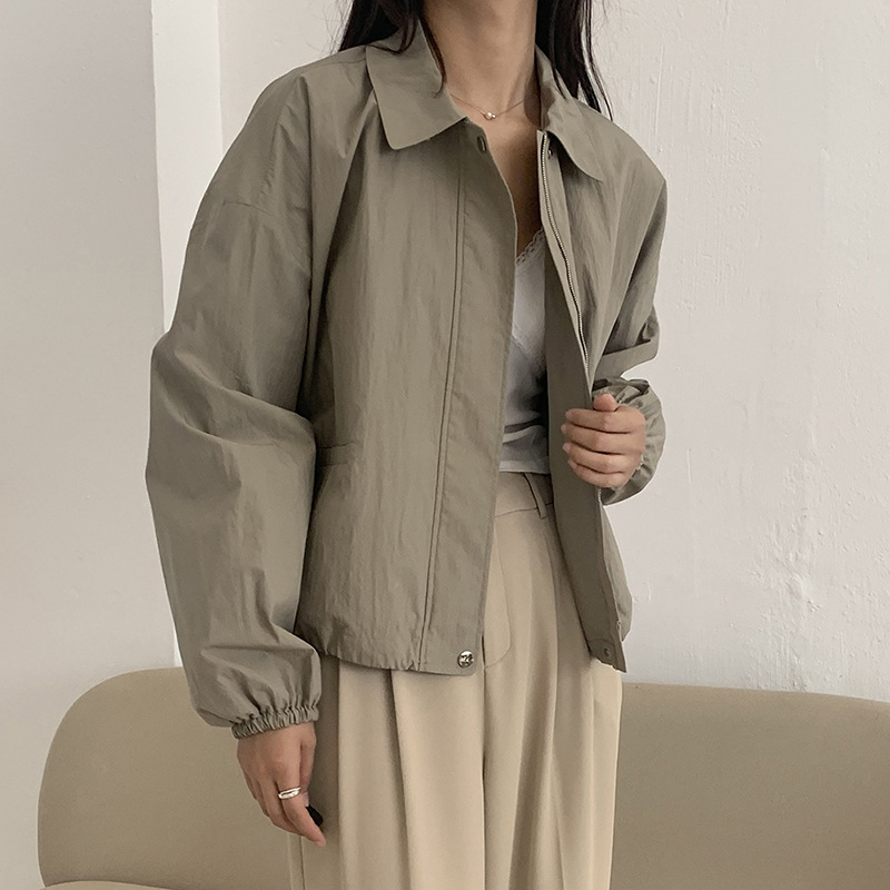 Phiên bản Hàn Quốc của mùa thu mới phù hợp với tất cả các công cụ áo khoác áo khoác nữ màu trơn phần ngắn nhỏ đơn giản giản dị khóa kéo hàng đầu