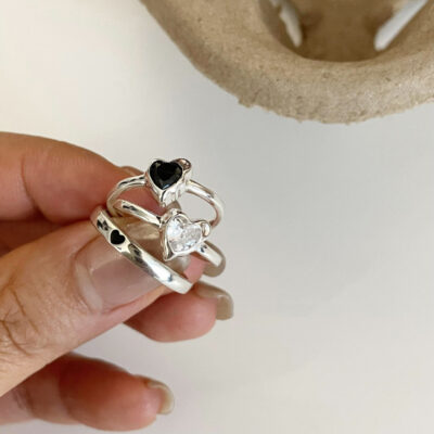 Phiên bản Hàn Quốc của thiết kế thích hợp nhẫn đính đá đen tình yêu nữ gió lạnh cá tính thời trang phù hợp với ngón trỏ cao cấp