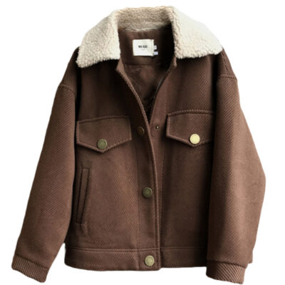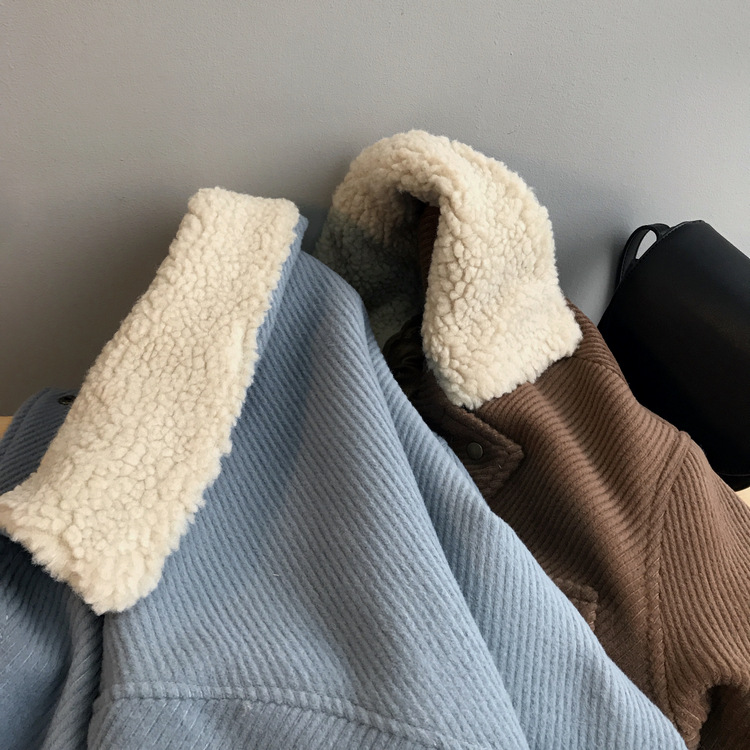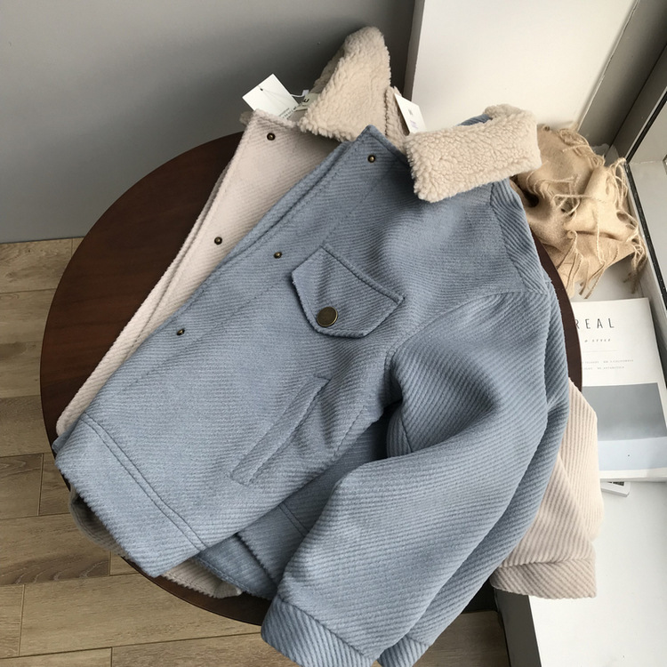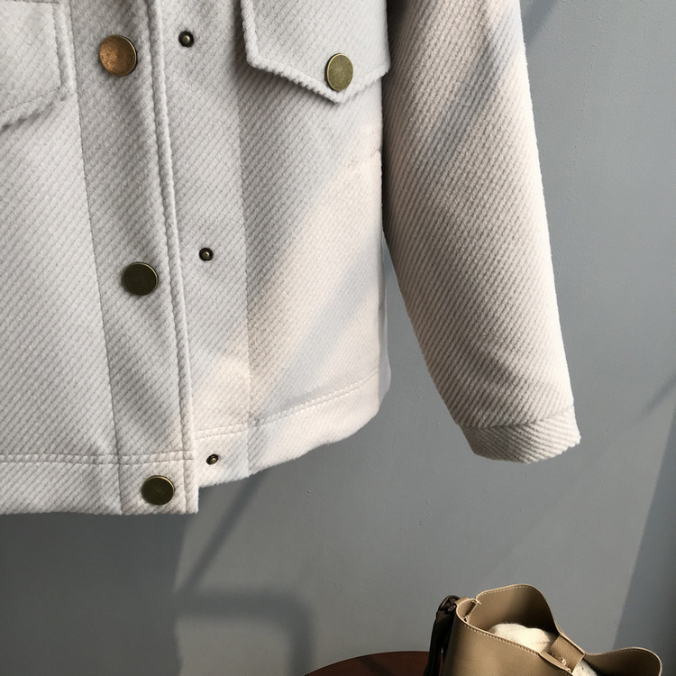 Phiên bản Hàn Quốc dáng rộng nhỏ áo khoác len nữ xuân thu mới cừu len cổ dày áo khoác len ngắn