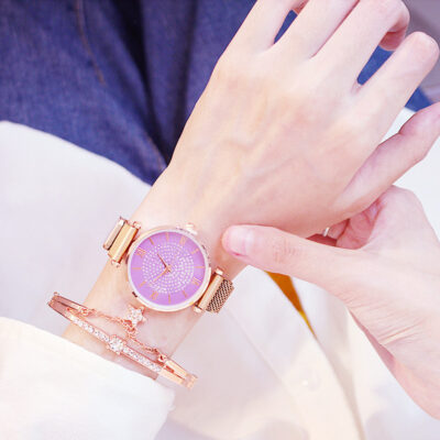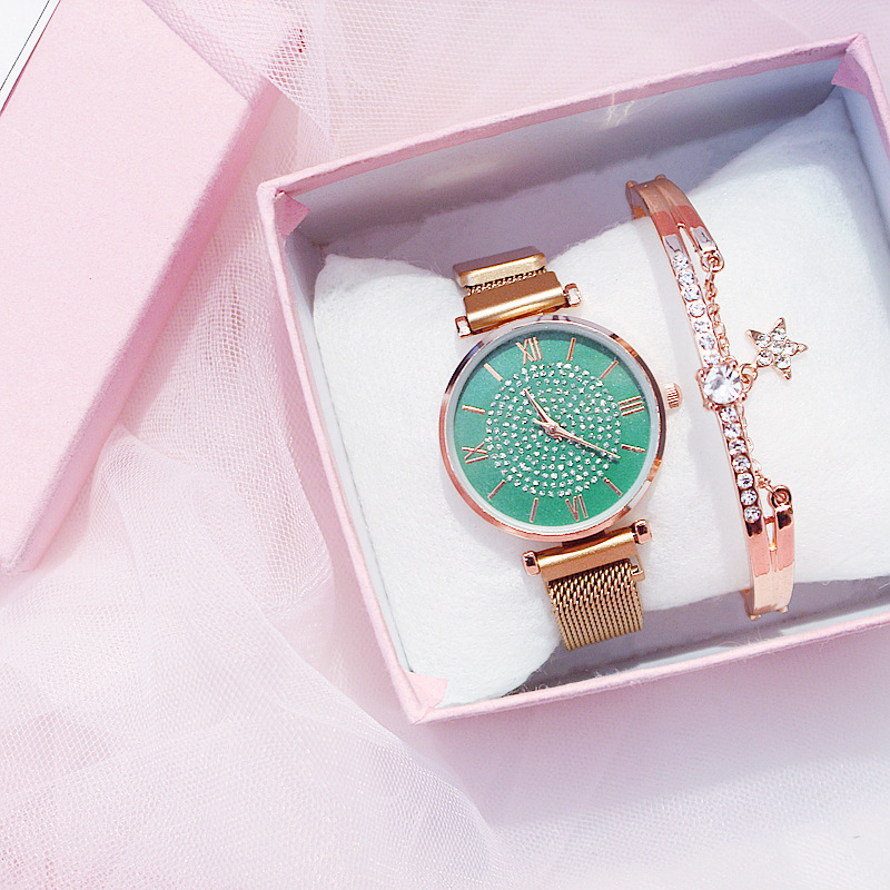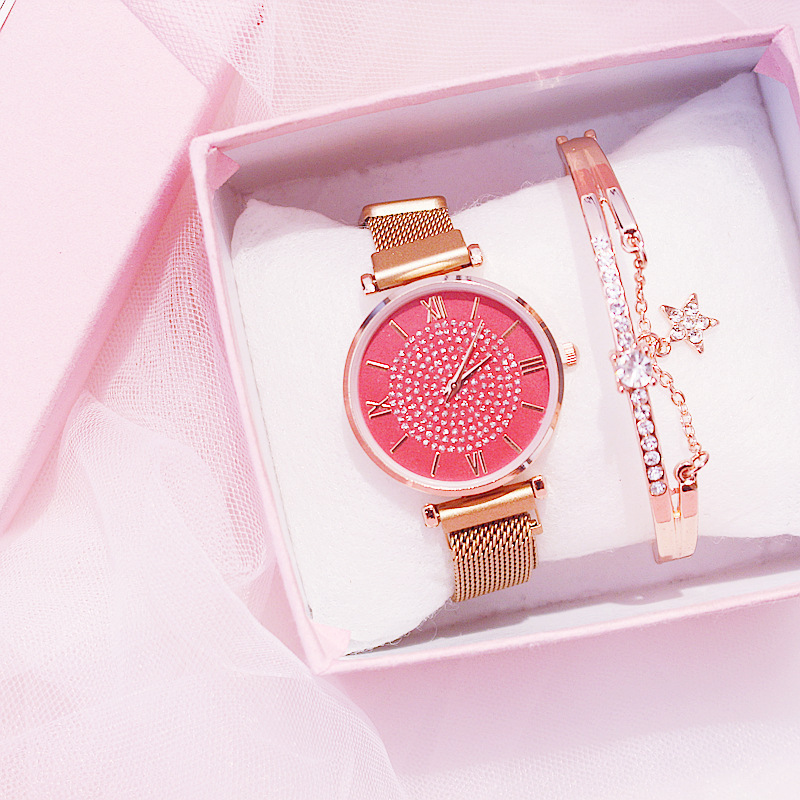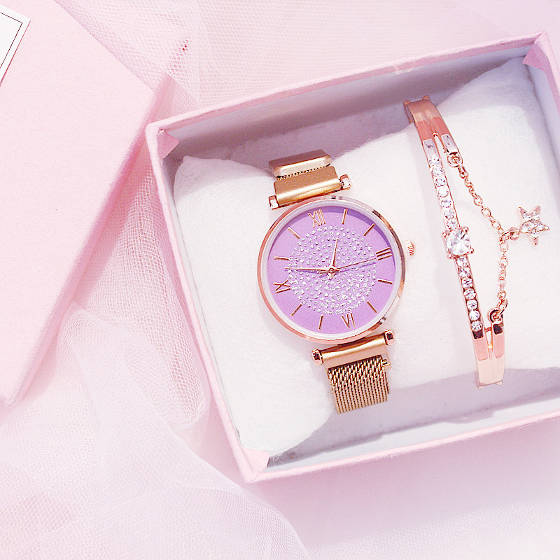 Phiên bản Hàn Quốc đồng hồ nữ đơn giản đầy sao đồng hồ nữ sinh đính đá Douyin cùng phong cách xu hướng thời trang đồng hồ nữ