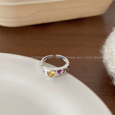 Phiên bản Hàn Quốc hình học màu đá không đều vòng mở nhẫn ngọt ngào mát mẻ phù hợp với mọi kích thước nhẫn trang sức thời trang