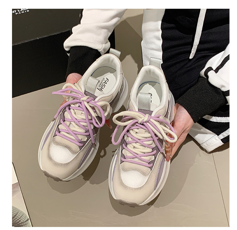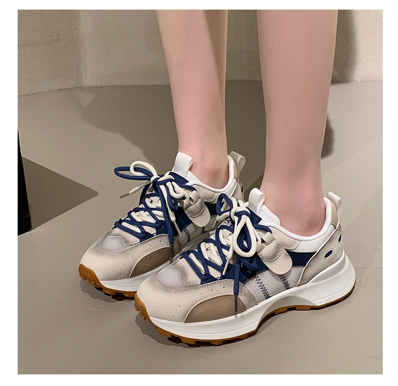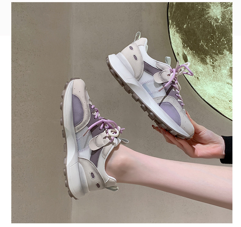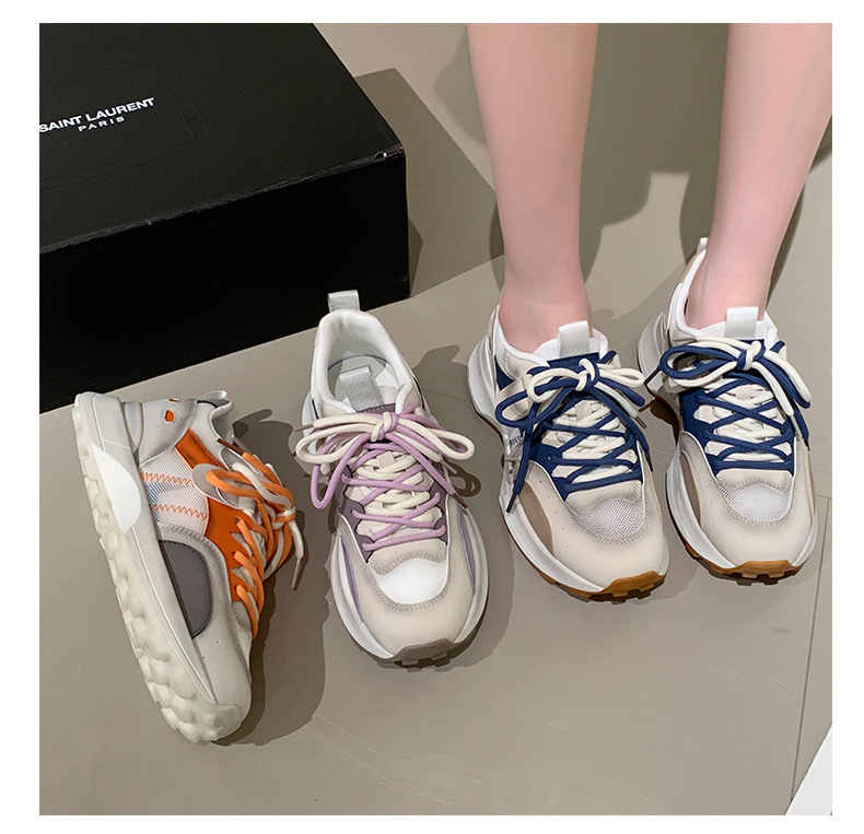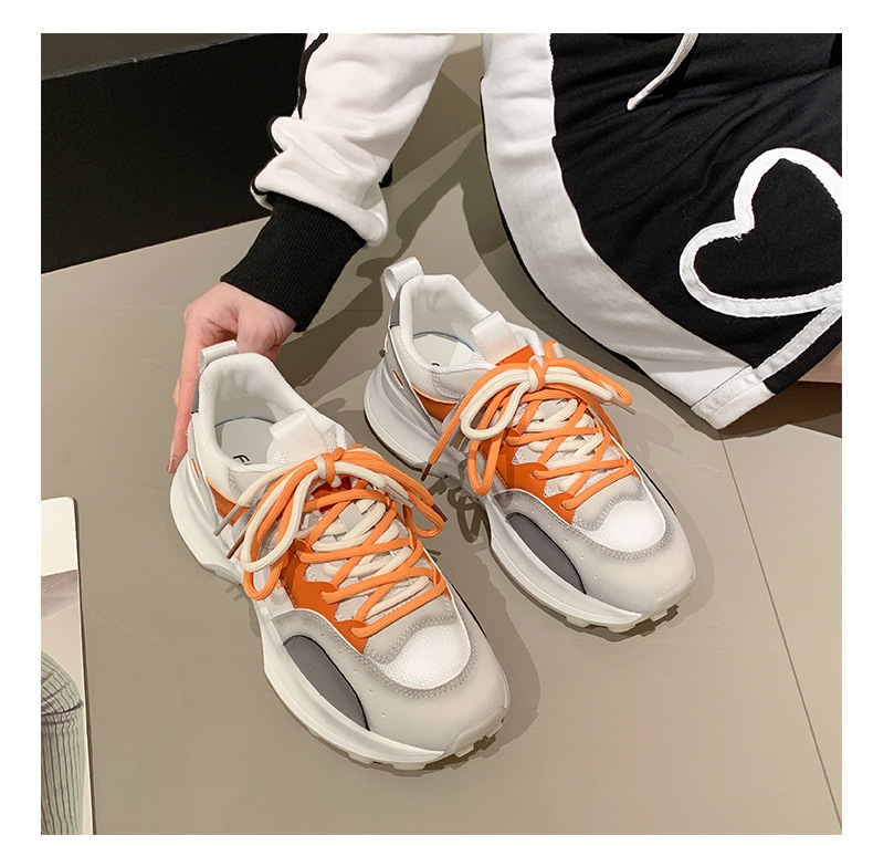 Phiên bản Hàn Quốc hợp thời trang eo nhỏ Giày Forrest Gump mũi tròn phối ren lưới màu đỏ giày chạy bộ phong cách đại học giày nữ thời trang giản dị