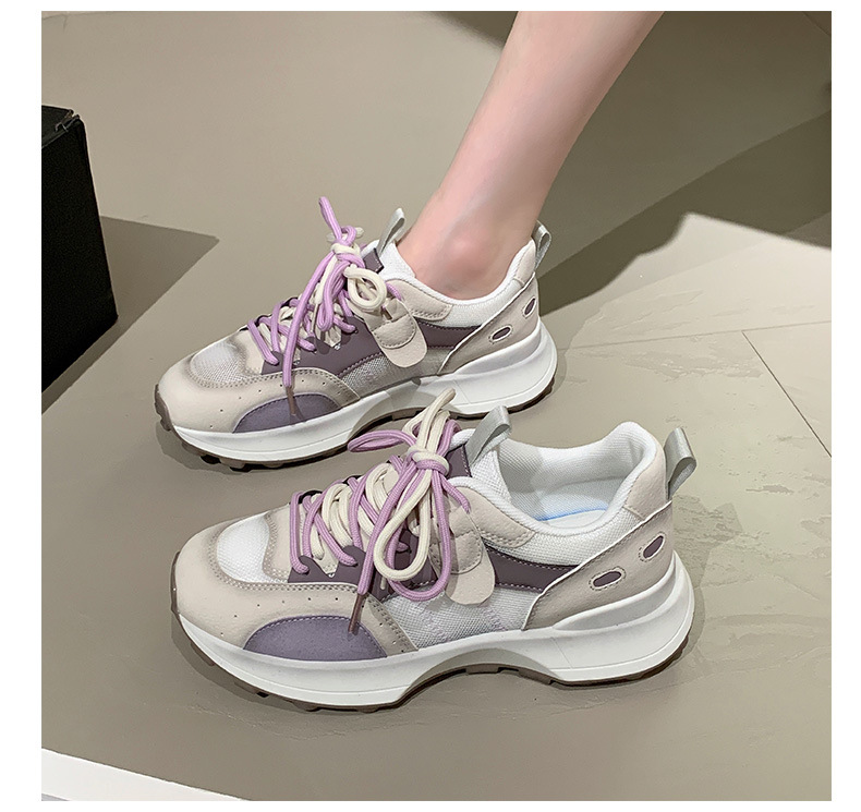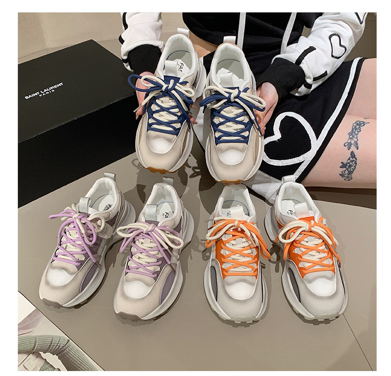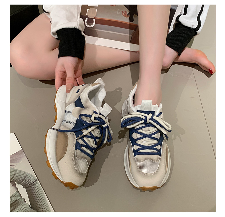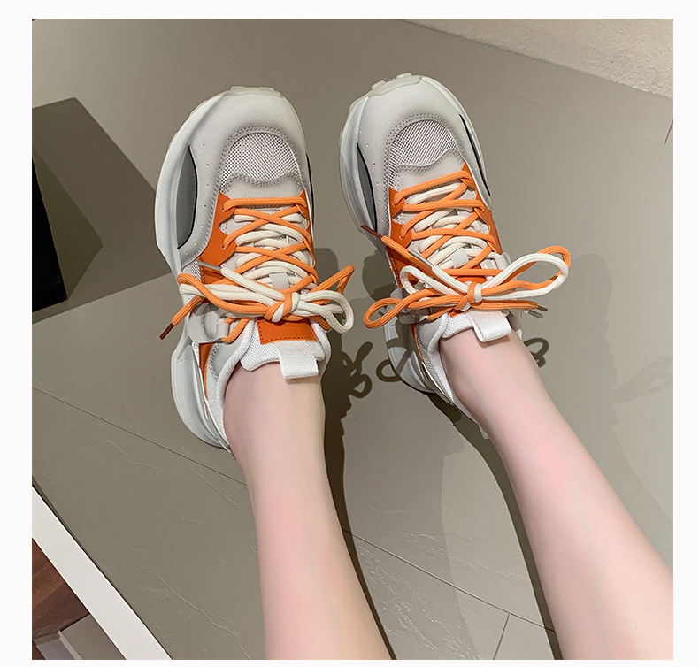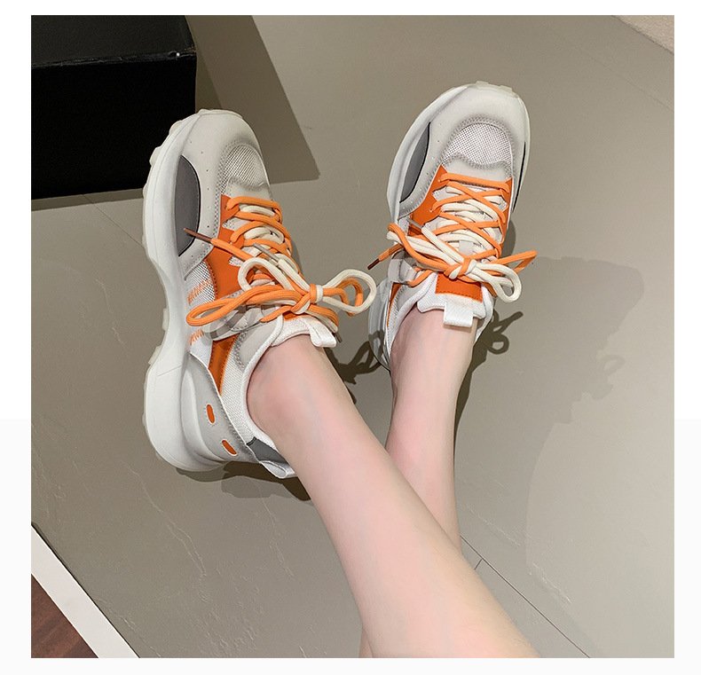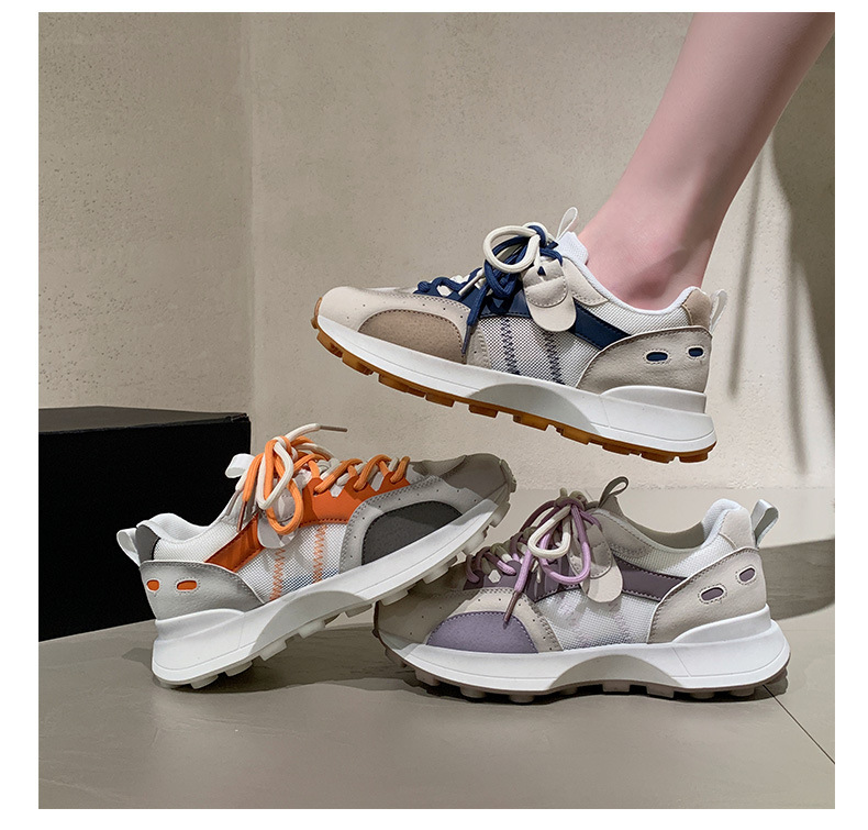 Phiên bản Hàn Quốc hợp thời trang eo nhỏ Giày Forrest Gump mũi tròn phối ren lưới màu đỏ giày chạy bộ phong cách đại học giày nữ thời trang giản dị