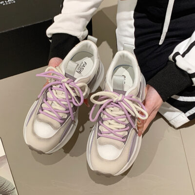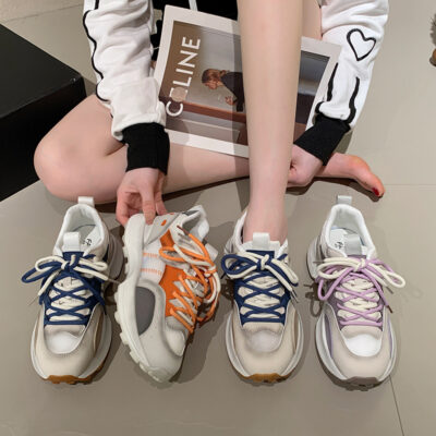 Phiên bản Hàn Quốc hợp thời trang eo nhỏ Giày Forrest Gump mũi tròn phối ren lưới màu đỏ giày chạy bộ phong cách đại học giày nữ thời trang giản dị