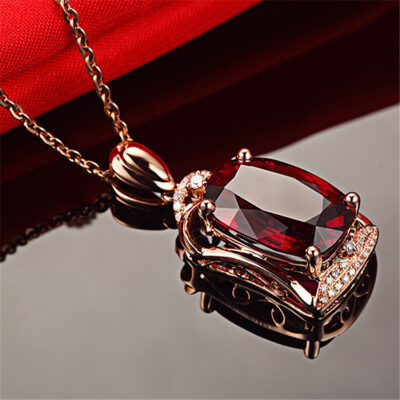 Phiên bản Hàn Quốc mạ điện 18K vàng hồng tourmaline mặt dây chuyền mặt dây chuyền tính khí xu hướng lớn vòng cổ mặt đá trần