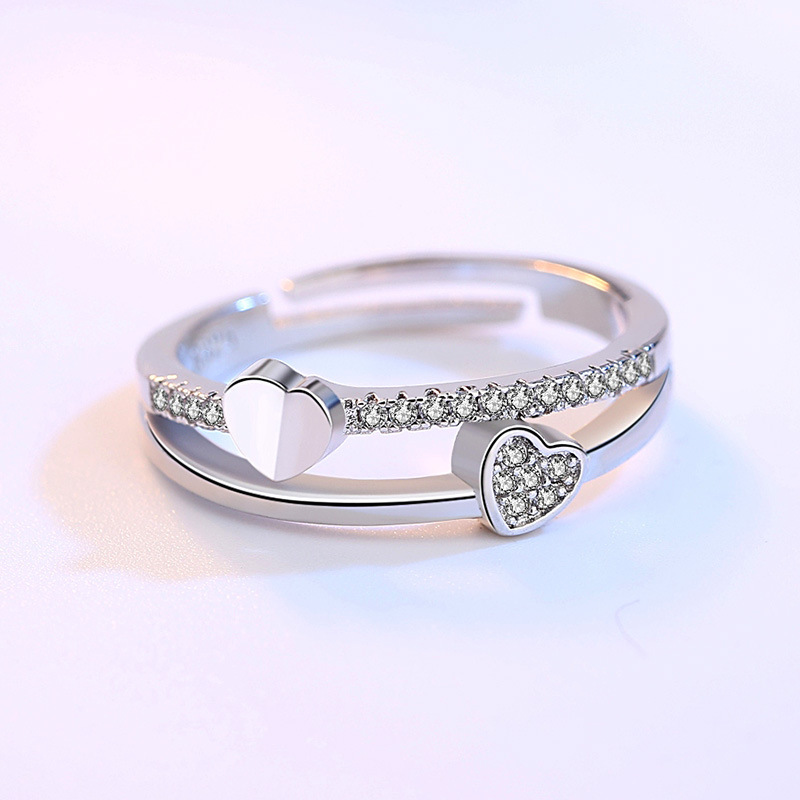 Phiên bản Hàn Quốc nhẫn bạc nữ hình trái tim khai mạc đám cưới đám cưới thời trang khảm zircon zircon nhẫn zircon Bán buôn thời trang Amazon