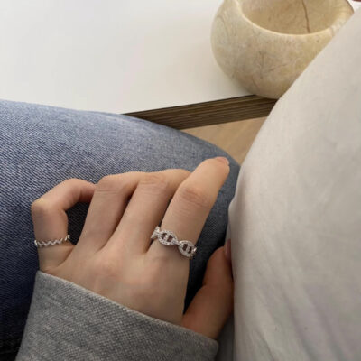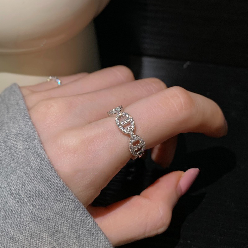 Phiên bản hàn quốc nhẫn mũi heo đá móng ngựa khí chất thời trang nữ nhẫn cảm giác cao cấp đơn giản và đa năng mới 2023