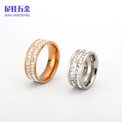 Phiên bản Hàn Quốc nhẫn thép không gỉ khí chất đơn và đôi hàng kim cương Nhẫn thép titan cặp đôi đầy sao cao cấp Nhẫn hợp thời trang