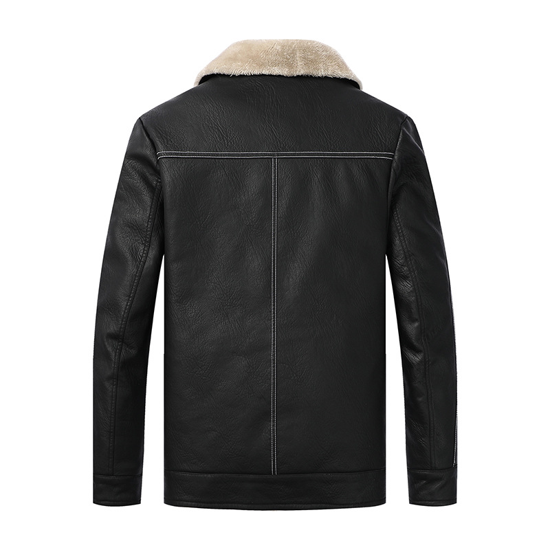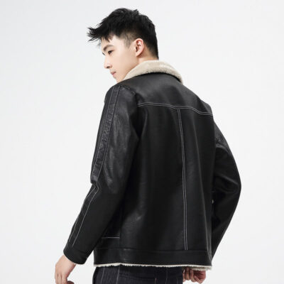 Phiên bản Hàn Quốc Plus nhung giản dị áo khoác da PU nam mùa đông xuyên biên giới xu hướng ve áo dày áo khoác chống gió xe da áo khoác