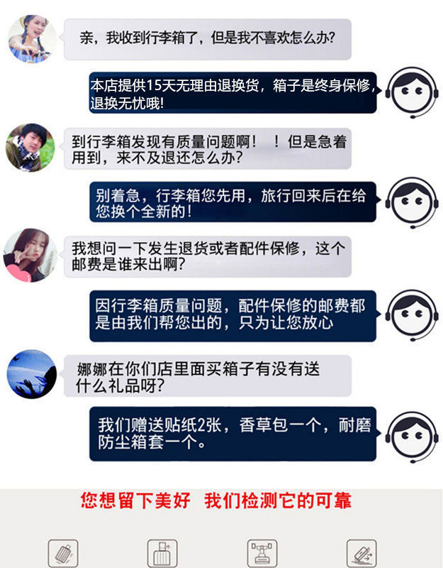 关于防撞包角款,20寸及22寸没有包角,24以上才有包角哦!606跟608区别在于一个有挂钩,一个没有挂钩!