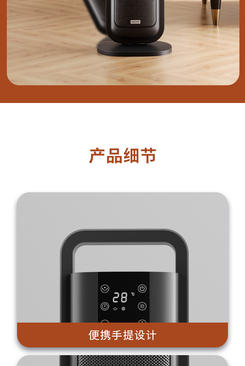 Philips Máy sưởi graphene hộ gia đình Máy sưởi nhanh phòng tắm tiết kiệm năng lượng tạo tác sưởi ấm bằng điện nhỏ dọc