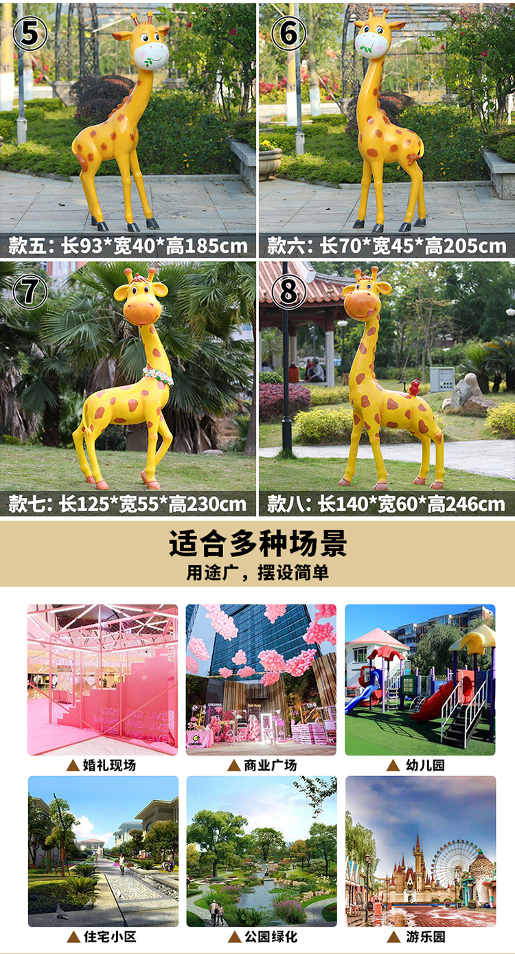 Sản phẩm nổi bật với các đặc điểm: Phim hoạt hình Con hươu cao cổ FRP Điêu khắc Sân vườn Ngoài trời Cảnh quan Mẫu giáo Thủ công mỹ nghệ Dễ thương Bản phác thảo Đồ trang trí Đồ trang trí