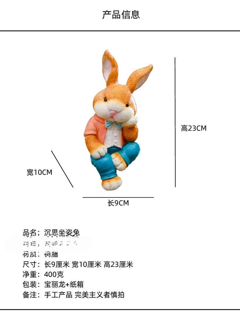 Phim hoạt hình máy tính để bàn thỏ ngồi đồ trang trí ngoài trời sân vườn trang trí động vật sáng tạo cảnh quan trang trí sân vườn là lựa chọn lý tưởng cho không gian công cộng, sân vườn hoặc khu đô thị. Sản phẩm giúp nâng cao hình ảnh chuyên nghiệp và sạch đẹp cho môi trường sống.