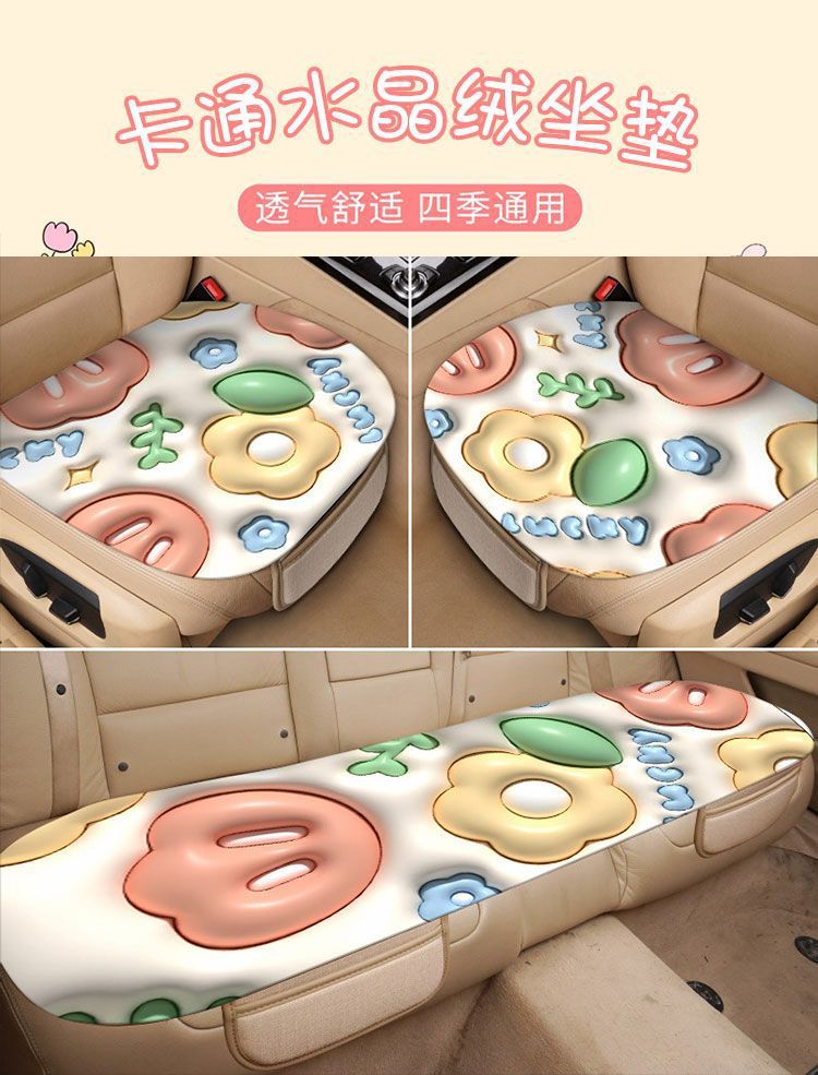 Phim hoạt hình mở rộng hoa nhỏ đệm ghế ô tô bốn mùa chung trang trí nội thất ô tô nhung ngắn dễ dàng chăm sóc đệm ghế ô tô