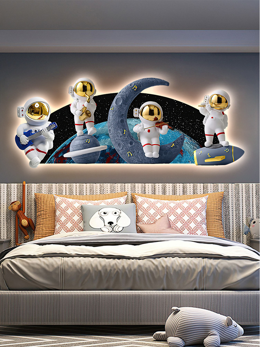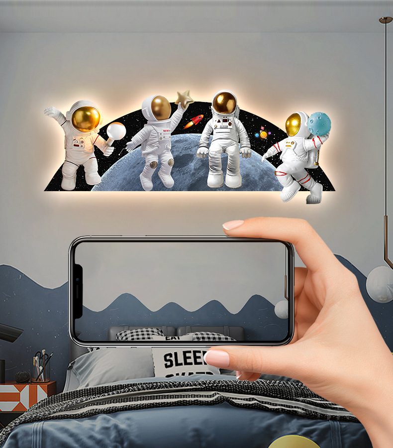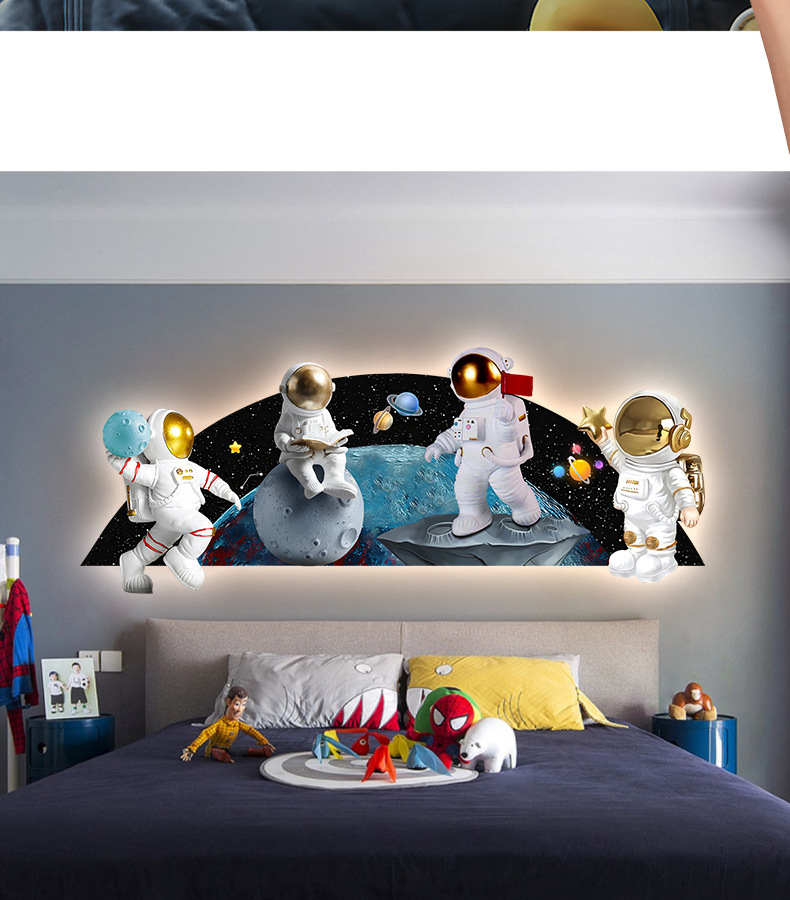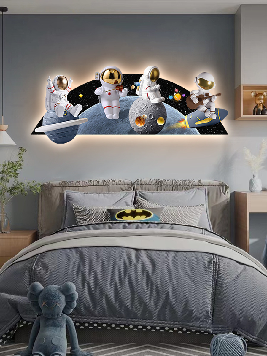 Phim hoạt hình phi hành gia phòng trẻ em bức tranh trang trí bức tranh đèn LED bức tranh ấm áp và đơn giản phòng cậu bé treo bức tranh phòng ngủ bức tranh phát sáng